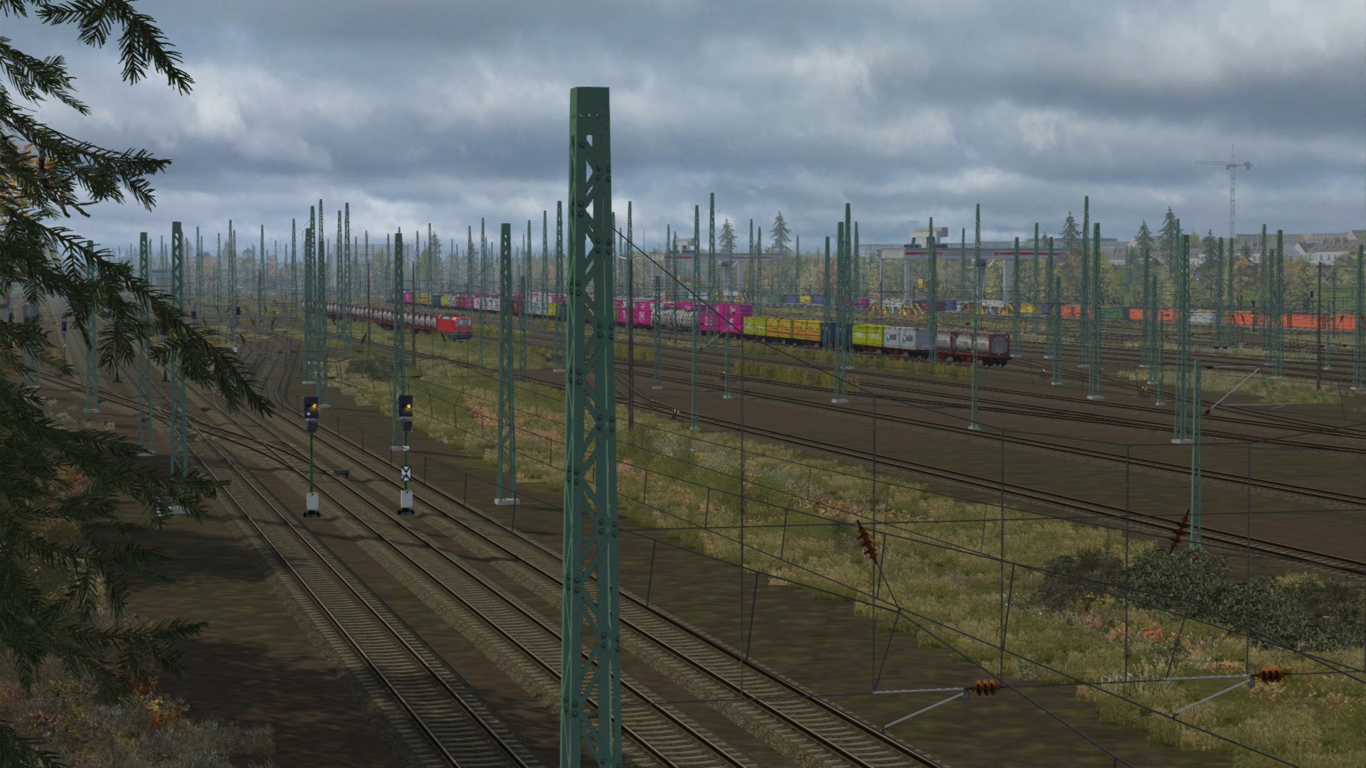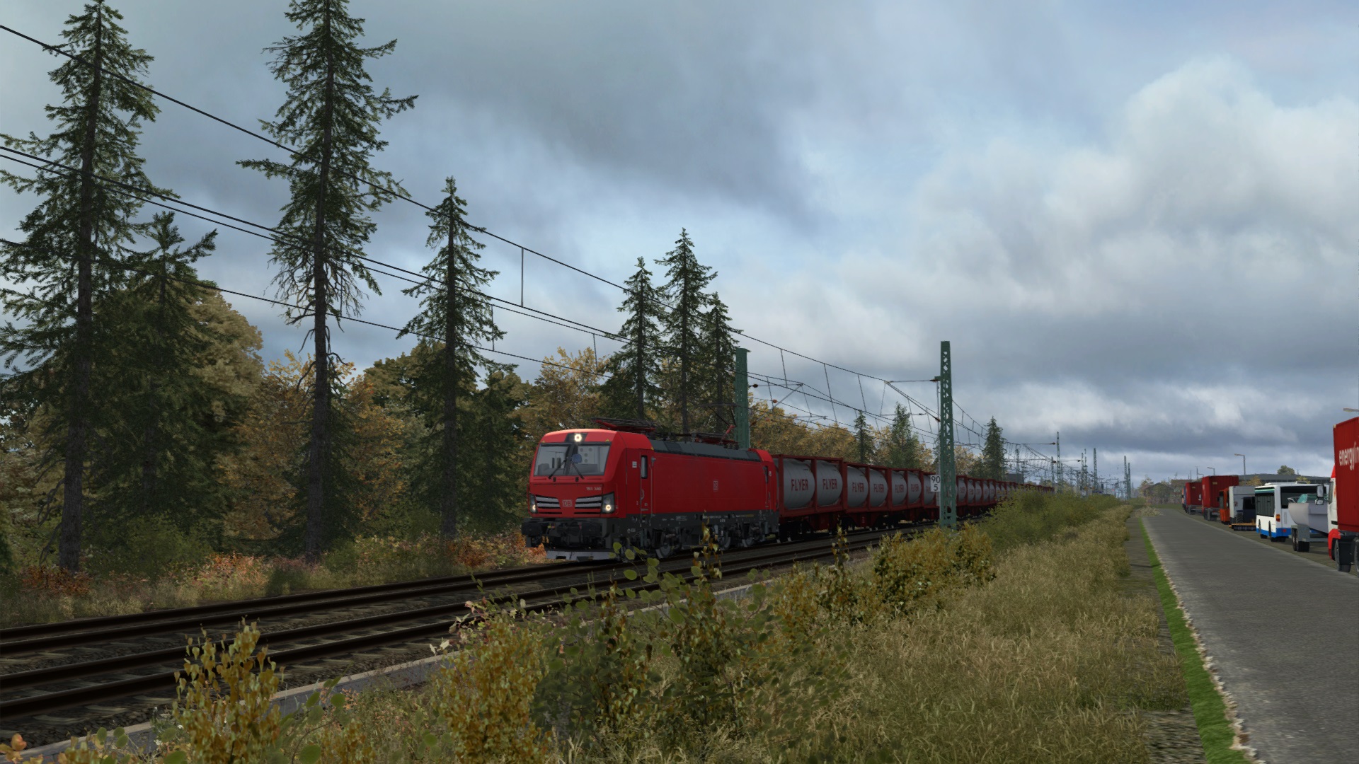Vectron mit Tanktainern von Kehl nach Karlsruhe. (Das Szenario endet kurz danach mit einer Kollision, frage mich grad warum ich auf dem Gegengleis fahre. Nur die Lok getauscht