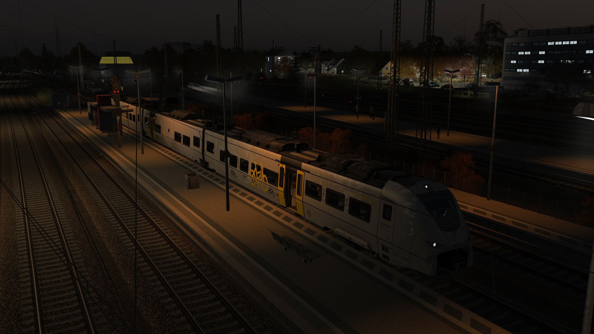 Und etwas im Dunkeln: Generell verbaue ich keine umfassende Straßenbeleuchtung auf meiner Strecke, da es immer ziemlich fummelig ist und ich quasi nie nachts fahre. Um die Bahnhöfe und an Streckennahen Wegen mache ich aber in der Regel Ausnahmen.