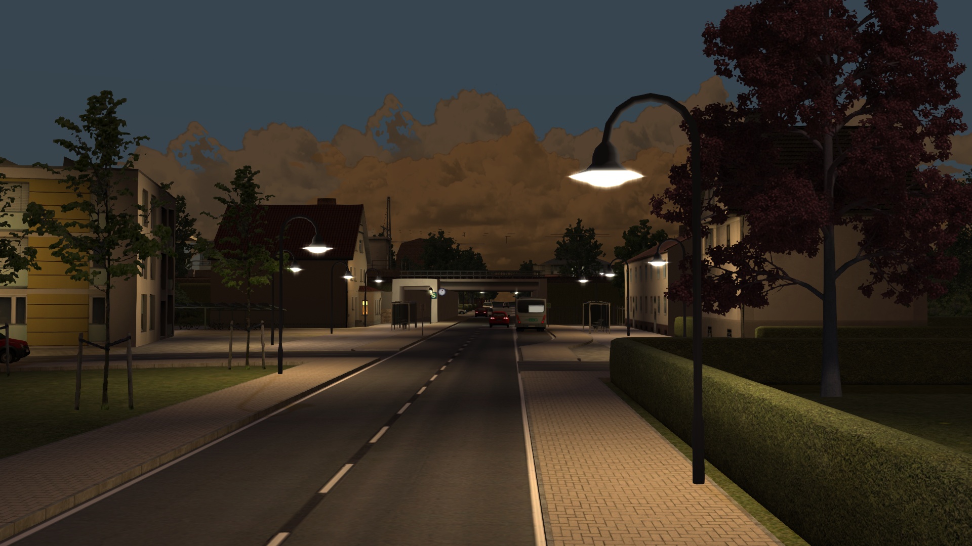 Und etwas im Dunkeln: Generell verbaue ich keine umfassende Straßenbeleuchtung auf meiner Strecke, da es immer ziemlich fummelig ist und ich quasi nie nachts fahre. Um die Bahnhöfe und an Streckennahen Wegen mache ich aber in der Regel Ausnahmen.
