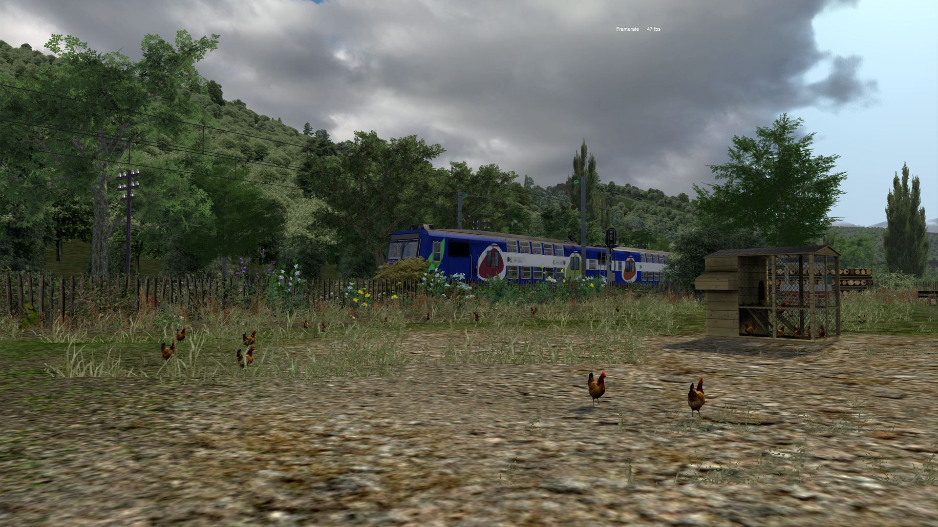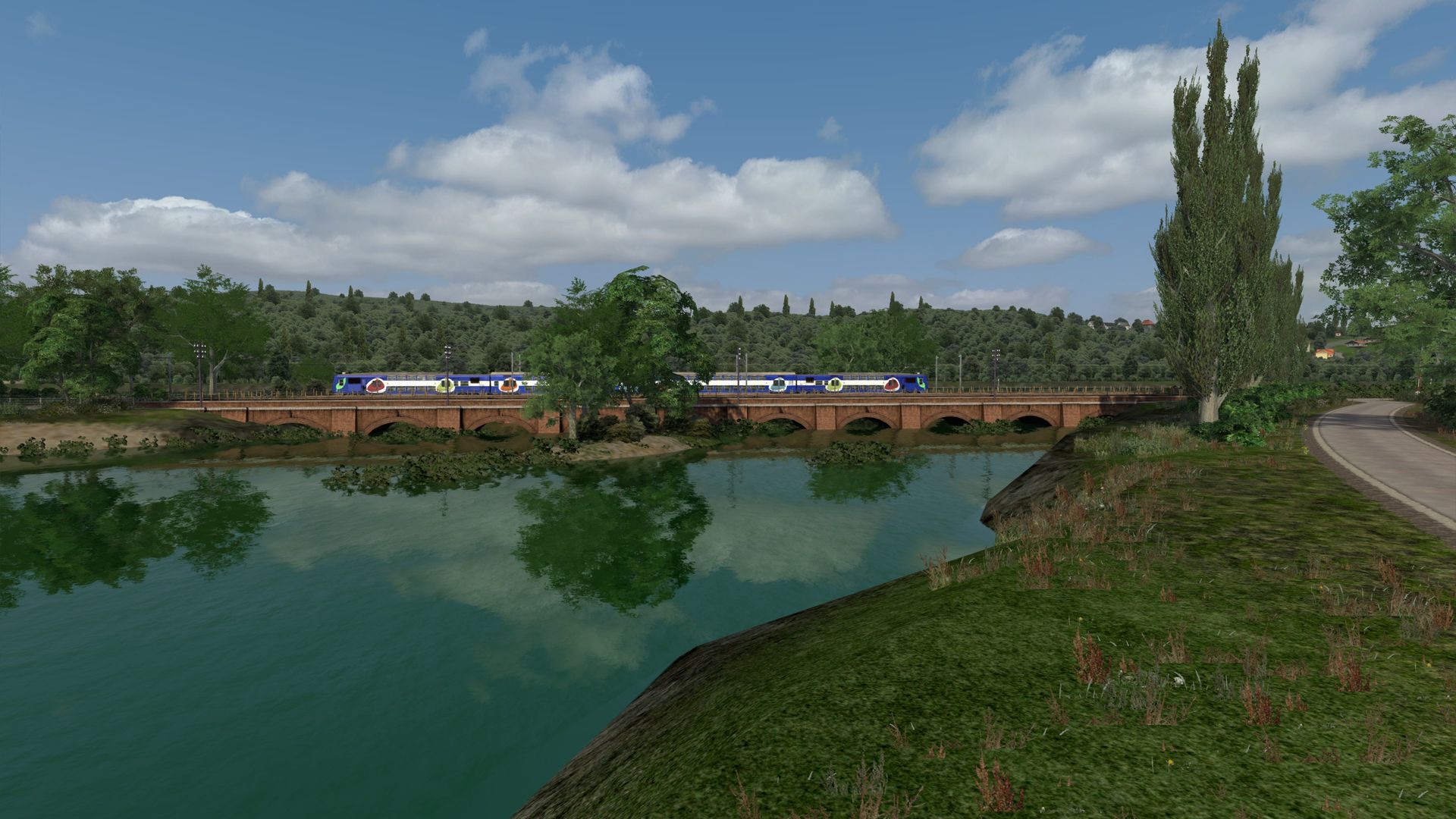 Meine kleine virtuelle Bahnreise führte mich nach Frankreich und zurück in die 1960er bis 1970er Jahre, so schätze ich es ein. Die fiktive Strecke "La Vallée" wurde vom französischen Freeware-Hersteller Zawal, der sehr viel Strecken erstellt hat. Die deutsche Übersetzung von La Vallée ist "Im Tal" und so ist es wirklich. Die durchweg elektrifizierte Strecke führt am Fluss entlang. Sie hat eine Länge von ca. 48 Kilometer mit vielen kleinen Hafenlagen, Tunneln, Brücken. Die Strecke ist meiner Meinung sehr, sehr gut ausgestaltet worden, hier brauch von der Vegetation nichts verändert werden. Der Mix aus 2D und 3D Vegetation ist gut getroffen. Nach Anmeldung/Registrierung bei RW-Central https://www.rwcentral.com/file…%C3%A9e-2017-2d-by-zawal/ oder https://www.railsim-fr.com/for…e-2017-rails-2d-by-zawal/ und zusätzlich noch der Link zu den Assets -Packs https://www.railsim-fr.com/for…3%A9lectrifi%C3%A9e-2017/.
