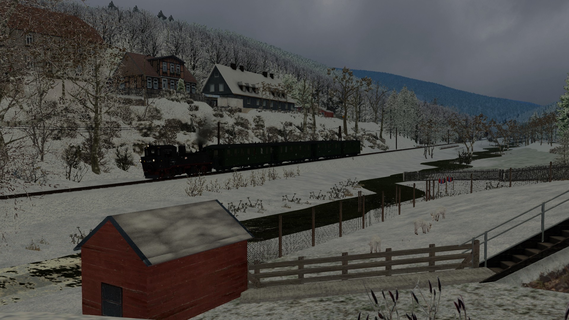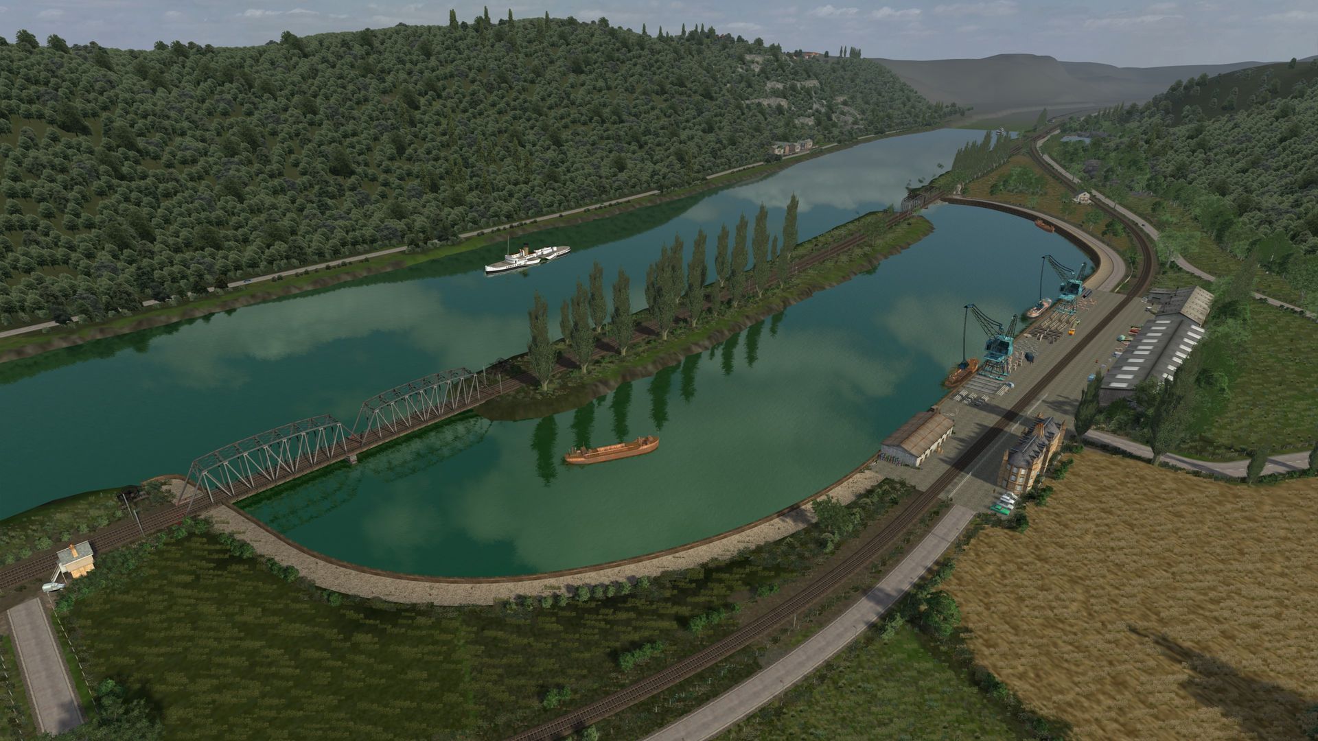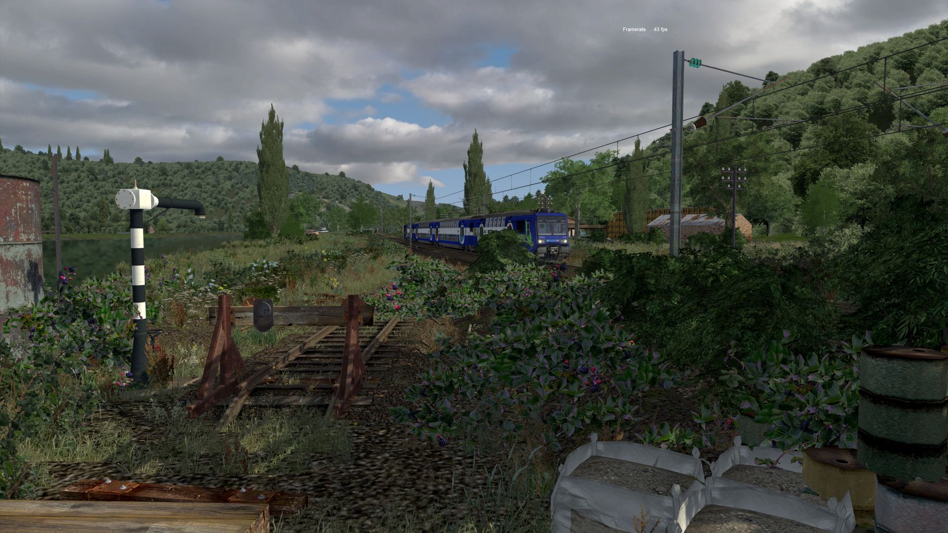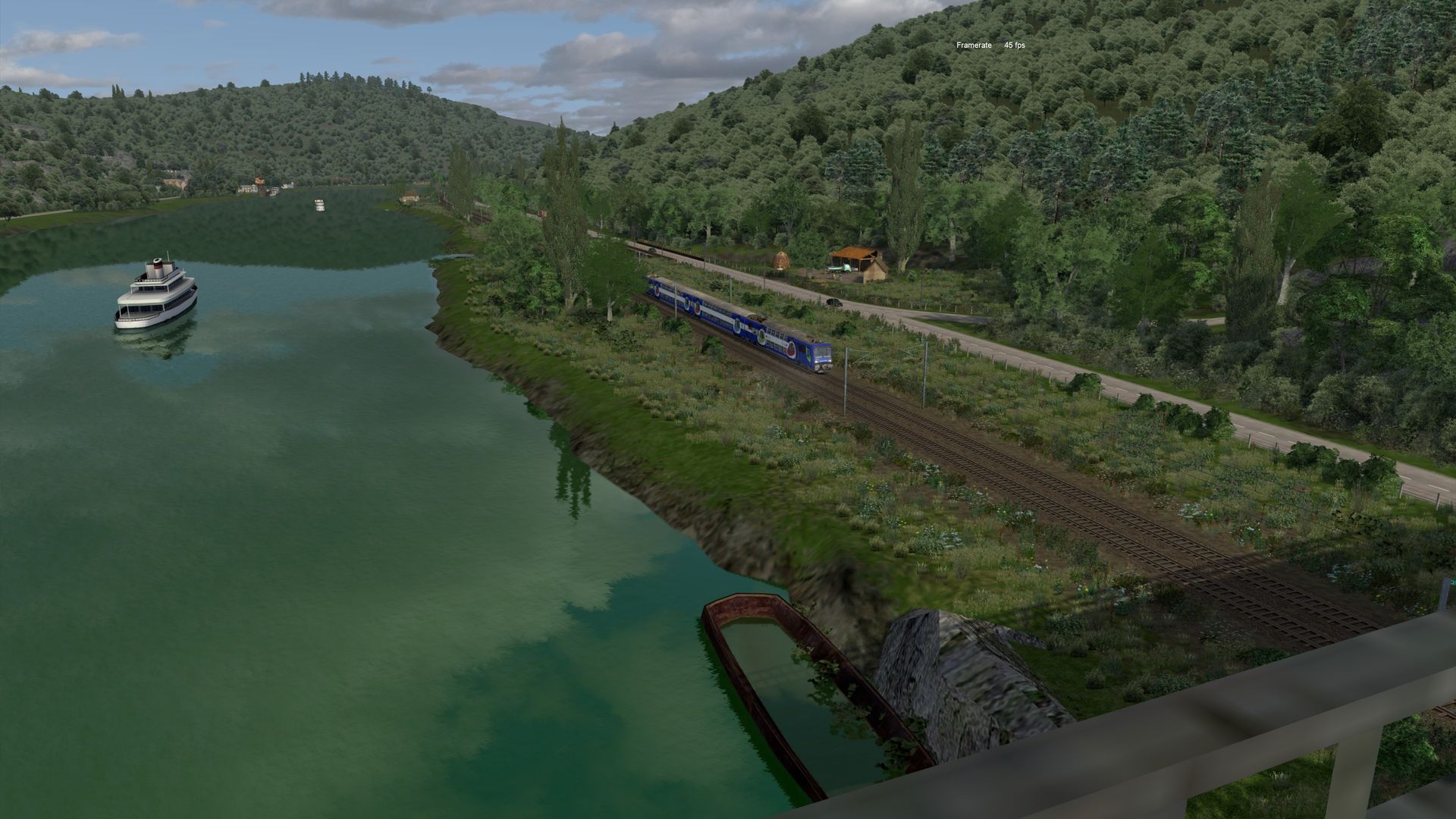 Meine kleine virtuelle Bahnreise führte mich nach Frankreich und zurück in die 1960er bis 1970er Jahre, so schätze ich es ein. Die fiktive Strecke "La Vallée" wurde vom französischen Freeware-Hersteller Zawal, der sehr viel Strecken erstellt hat. Die deutsche Übersetzung von La Vallée ist "Im Tal" und so ist es wirklich. Die durchweg elektrifizierte Strecke führt am Fluss entlang. Sie hat eine Länge von ca. 48 Kilometer mit vielen kleinen Hafenlagen, Tunneln, Brücken. Die Strecke ist meiner Meinung sehr, sehr gut ausgestaltet worden, hier brauch von der Vegetation nichts verändert werden. Der Mix aus 2D und 3D Vegetation ist gut getroffen. Nach Anmeldung/Registrierung bei RW-Central https://www.rwcentral.com/file…%C3%A9e-2017-2d-by-zawal/ oder https://www.railsim-fr.com/for…e-2017-rails-2d-by-zawal/ und zusätzlich noch der Link zu den Assets -Packs https://www.railsim-fr.com/for…3%A9lectrifi%C3%A9e-2017/.