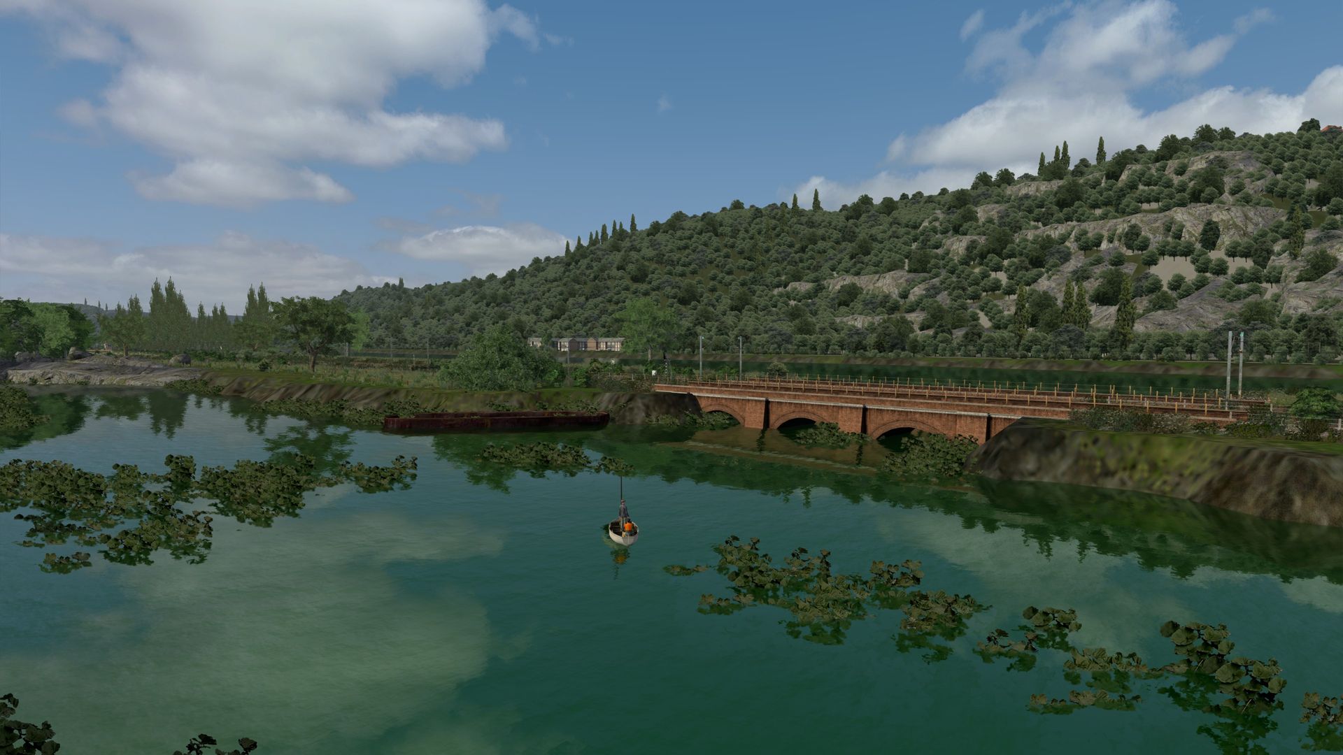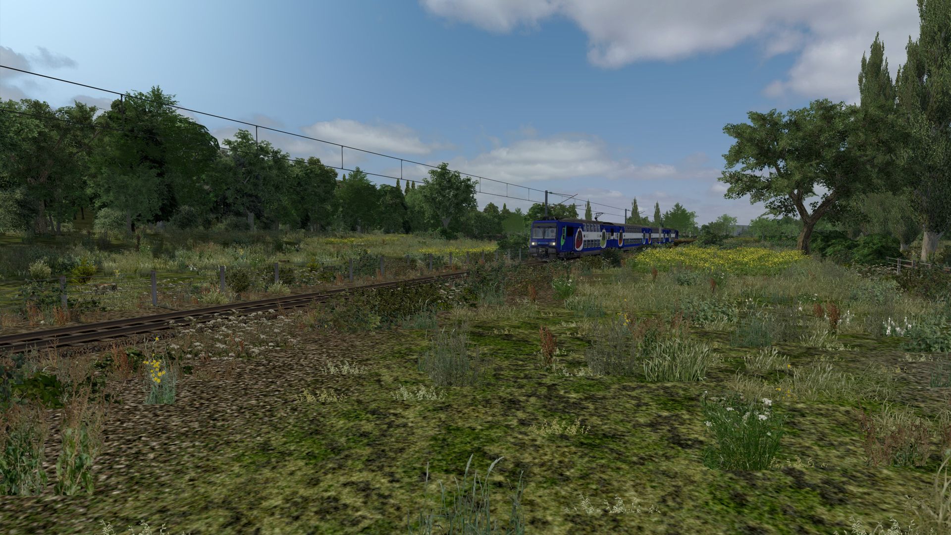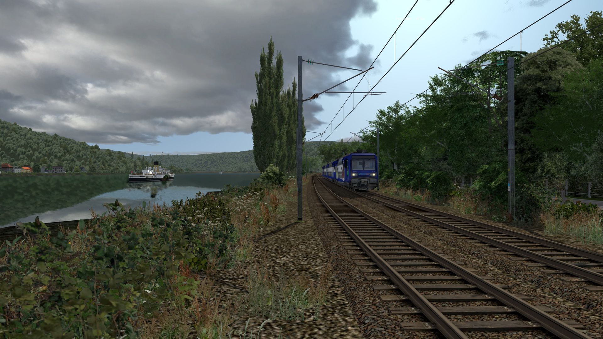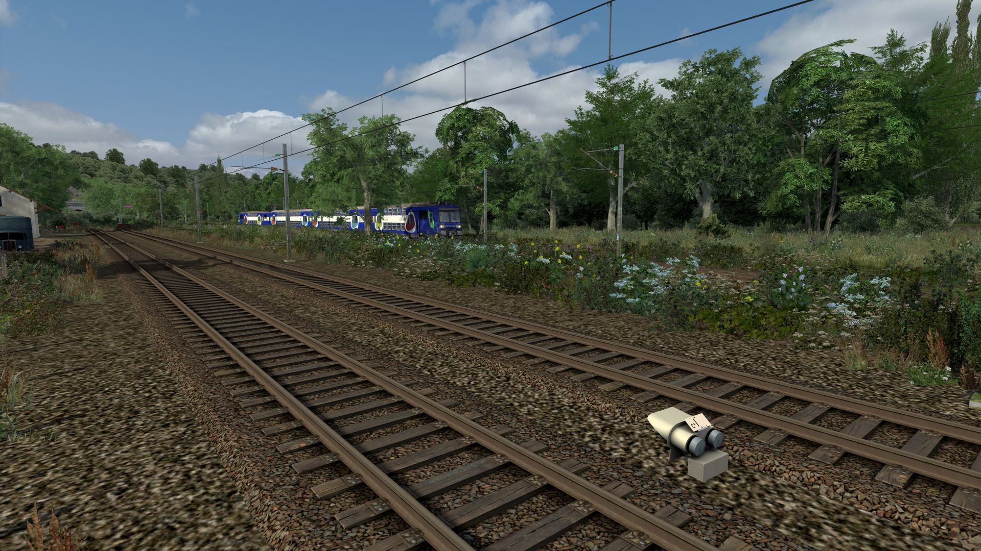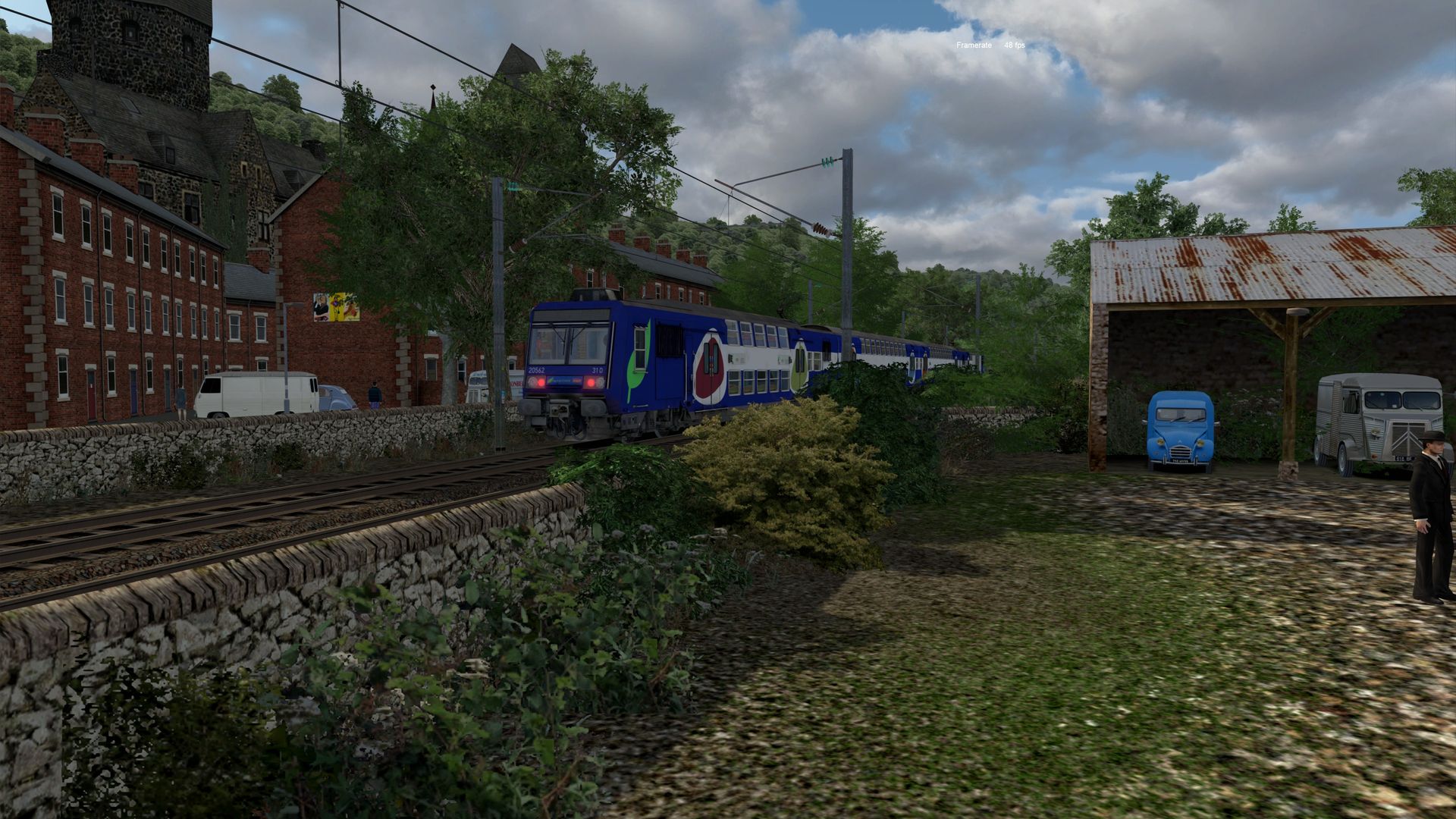 Meine kleine virtuelle Bahnreise führte mich nach Frankreich und zurück in die 1960er bis 1970er Jahre, so schätze ich es ein. Die fiktive Strecke "La Vallée" wurde vom französischen Freeware-Hersteller Zawal, der sehr viel Strecken erstellt hat. Die deutsche Übersetzung von La Vallée ist "Im Tal" und so ist es wirklich. Die durchweg elektrifizierte Strecke führt am Fluss entlang. Sie hat eine Länge von ca. 48 Kilometer mit vielen kleinen Hafenlagen, Tunneln, Brücken. Die Strecke ist meiner Meinung sehr, sehr gut ausgestaltet worden, hier brauch von der Vegetation nichts verändert werden. Der Mix aus 2D und 3D Vegetation ist gut getroffen. Nach Anmeldung/Registrierung bei RW-Central https://www.rwcentral.com/file…%C3%A9e-2017-2d-by-zawal/ oder https://www.railsim-fr.com/for…e-2017-rails-2d-by-zawal/ und zusätzlich noch der Link zu den Assets -Packs https://www.railsim-fr.com/for…3%A9lectrifi%C3%A9e-2017/.