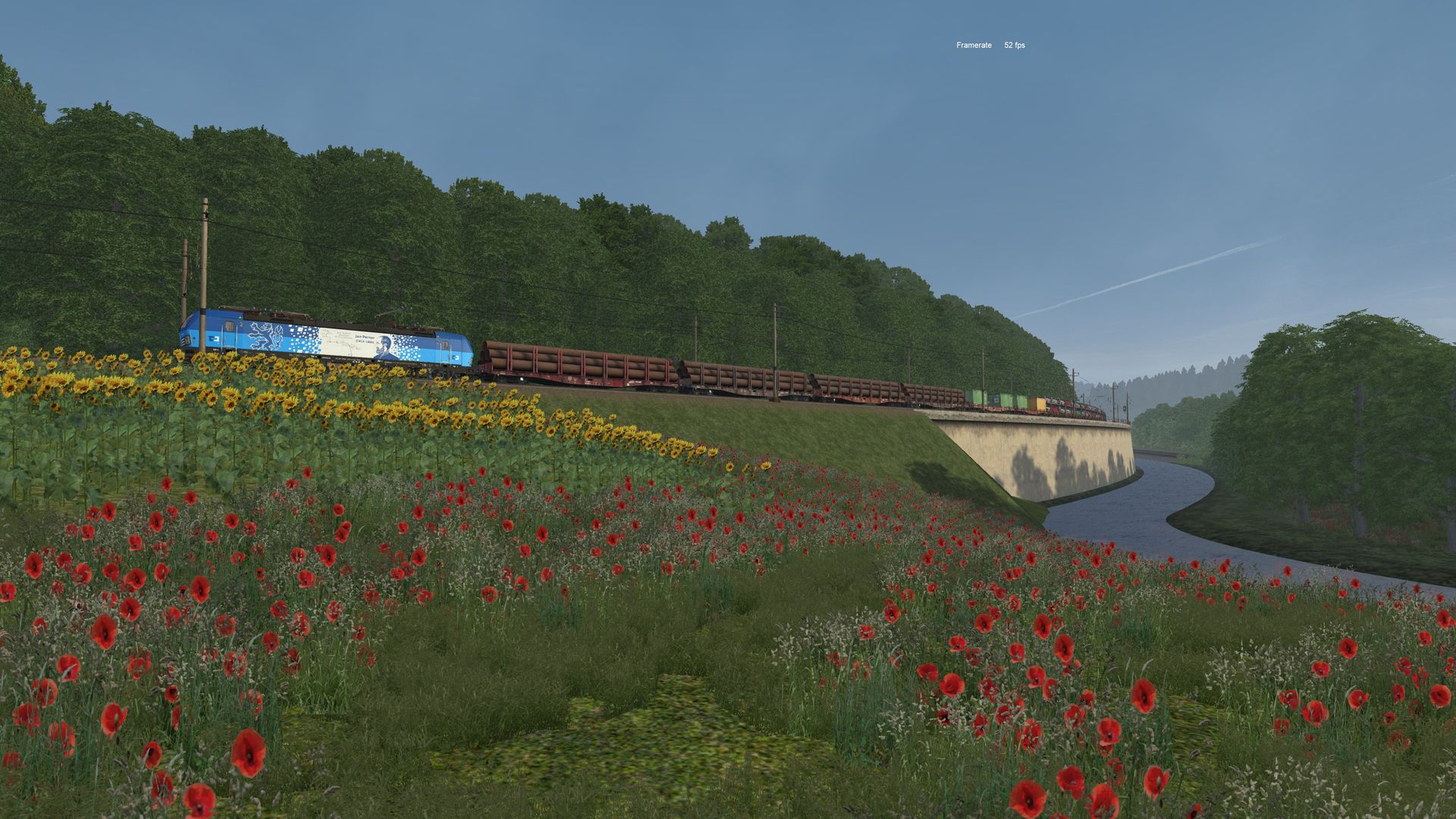 Zum Schluss habe ich begonnen mir ein eigenes Szenario zu erstellen mit den Güterwagen-Sets von Damo. Startzeit 6:15 Uhr bei leichtem Nebel bei Brezpravi am Tunnel und endet nach ca. 70 Minuten in Navsi auf den Gütergleisen. Die Güterwagen von Damo sehen sehr gut aus und mache was her nur ein keines Manko gibt es leider, sie haben leisen bzw. keinen Rollsound. Die Info habe Damo in seinem eigenen Thread gegeben.