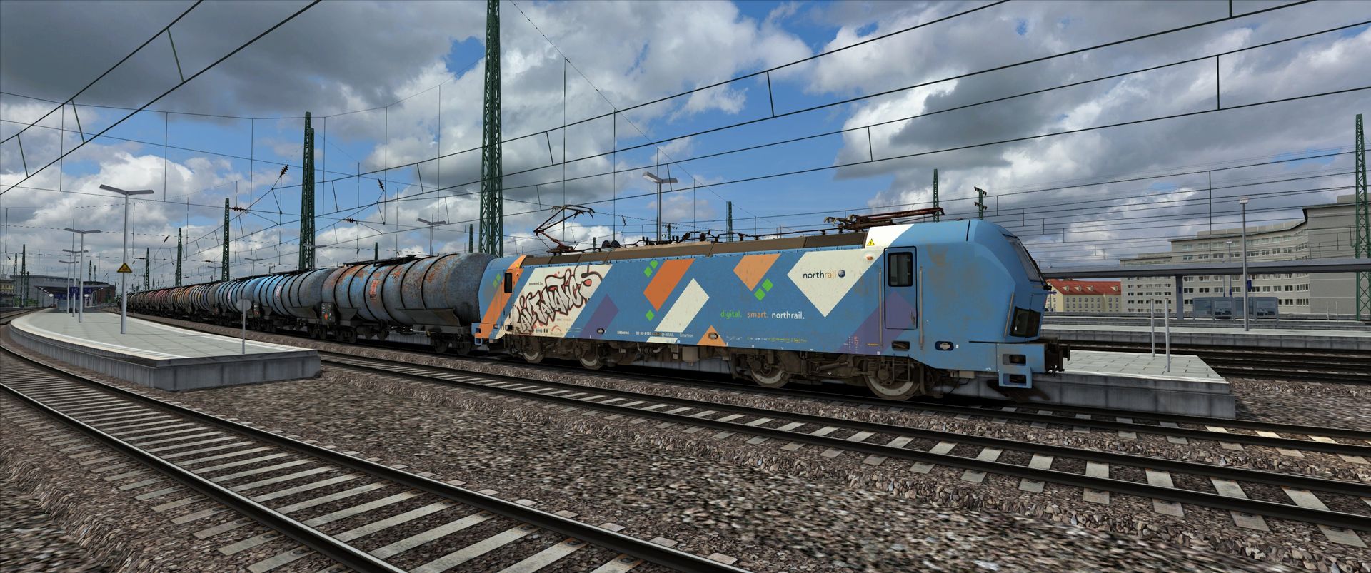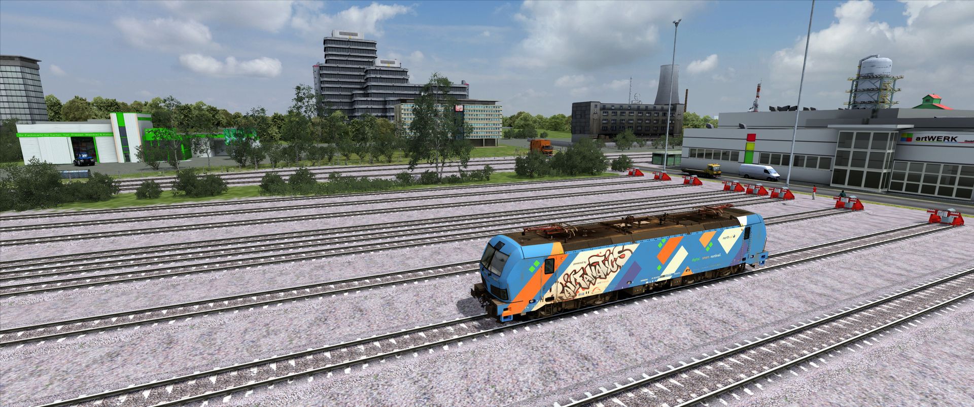 Working on timings for an Oldenburg-Bremen scenario. Arriving at Hude, a heavy freight train is coming in from Brake, and seconds later, a NWB Flirt 3 is coming in. Had to put this fictional stuff together as there's no quickdrives yet. After crashing a lot trying to get from Delmenhorst into Bremen Hbf without zwangsing, I finally got the grip on that bloody dispatcher. I'm not going to have problems with him. He is going to have problems with me, and I won. The shot is from Hude.