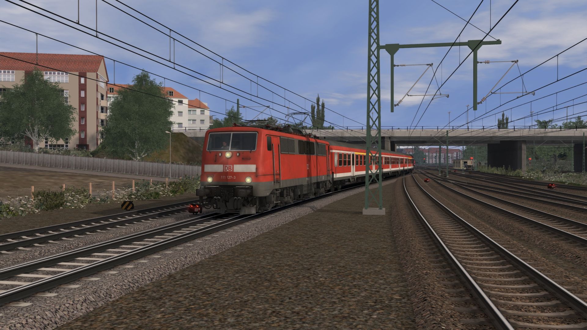 Working on timings for an Oldenburg-Bremen scenario. Arriving at Hude, a heavy freight train is coming in from Brake, and seconds later, a NWB Flirt 3 is coming in. Had to put this fictional stuff together as there's no quickdrives yet. After crashing a lot trying to get from Delmenhorst into Bremen Hbf without zwangsing, I finally got the grip on that bloody dispatcher. I'm not going to have problems with him. He is going to have problems with me, and I won. The shot is from Hude.