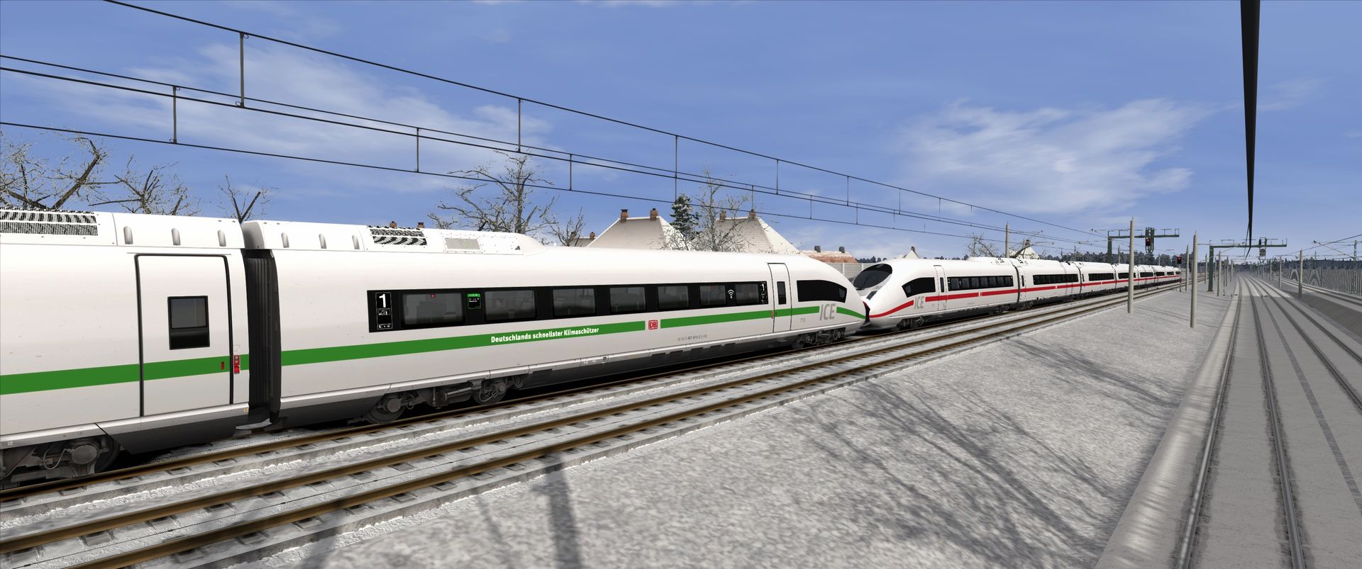 Ich teste den neuen Dell U3425WE-Monitor mit einer fiktiven Neulackierung des ICE 3 Velaro D in Klima-Lackierung.