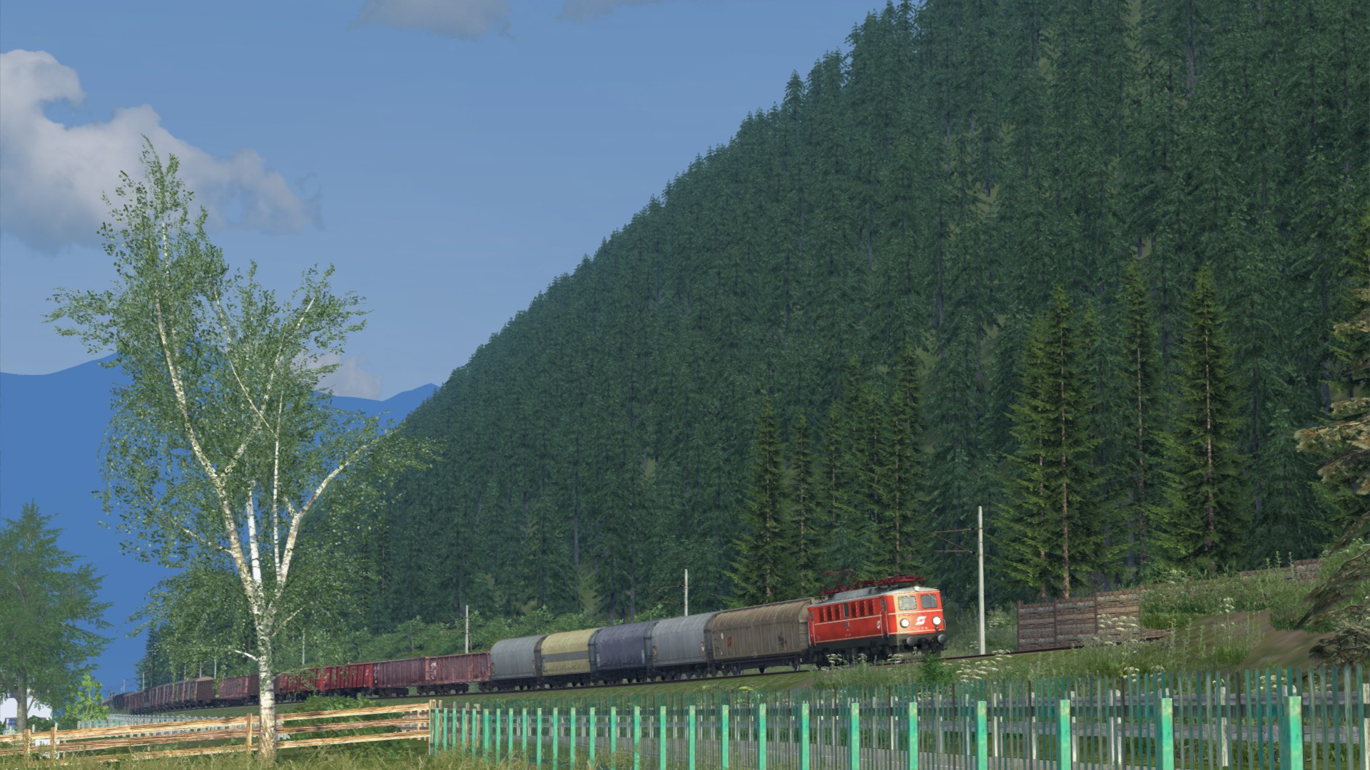 ..mit 217 und Güterzug in der Oberpfalz unterwegs zwischen Cham und Neubäu