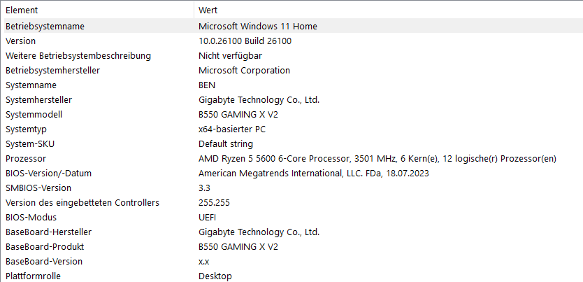 Meine Systemdaten: