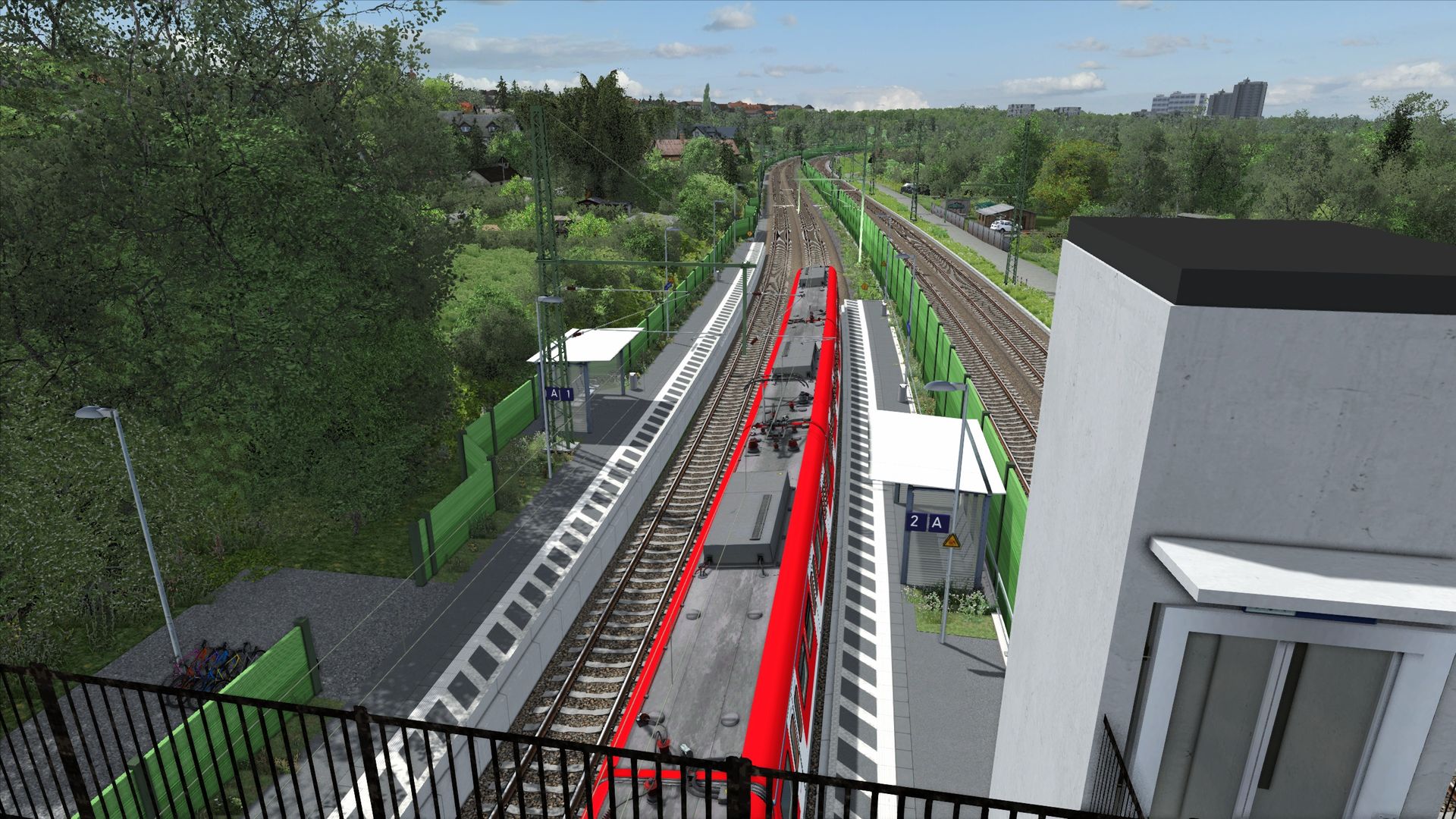 Schallschutzwände, Oberleitung etc. sind natürlich wieder wie in der Führerstandsmitfahrt gesetzt. Gleiches gilt für den Großteil der Bäume, Häuser, etc.. Berkersheim war auch ganz spannend auszugestalten und die Aufzüge habe ich dem Vorbildentsprechend selbst zusammengebastelt. Nachtbeleuchtung ist natürlich auch wieder vorhanden. Insgesamt bin ich sehr zufrieden wie es sich entwickelt hat.
