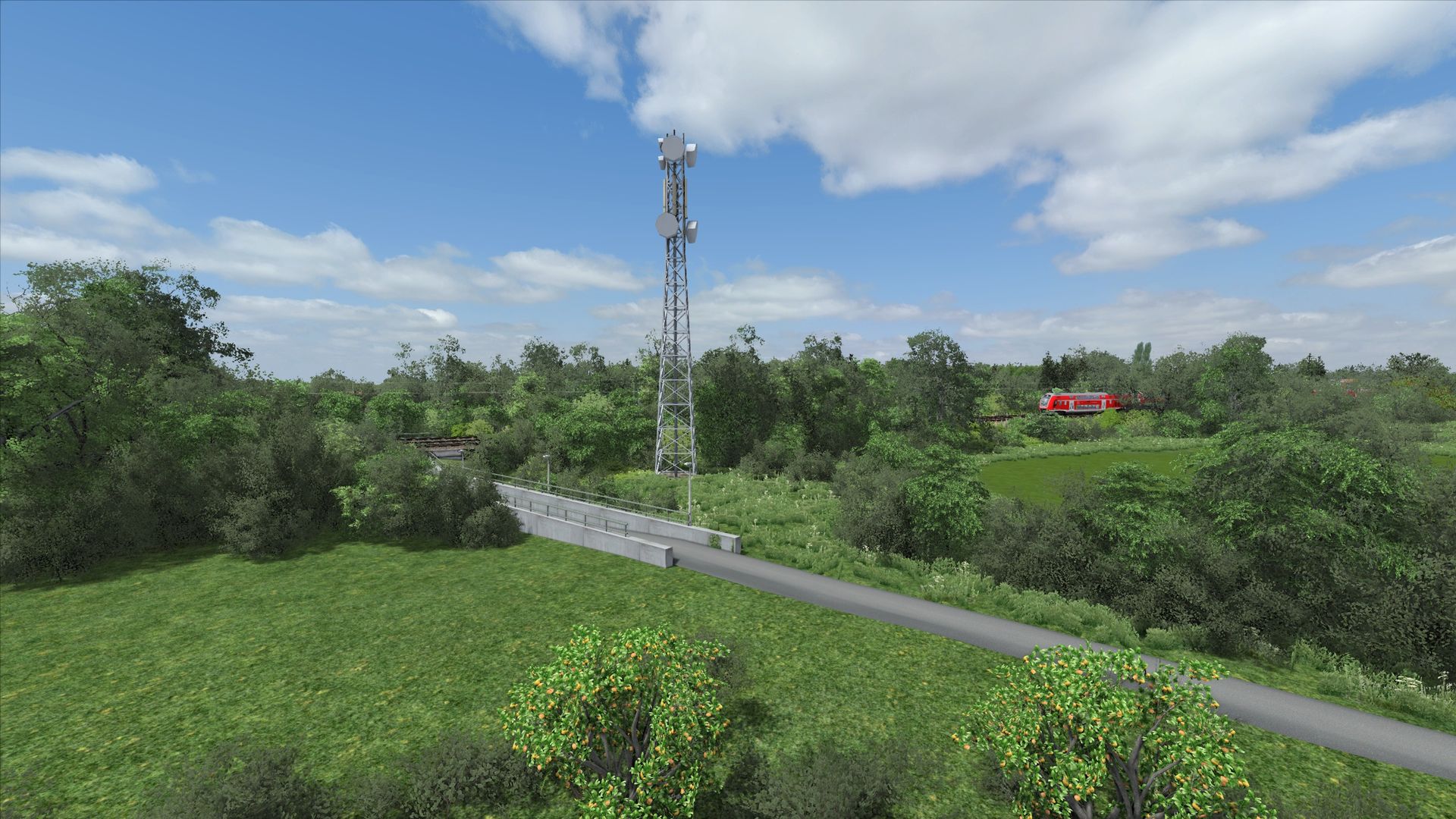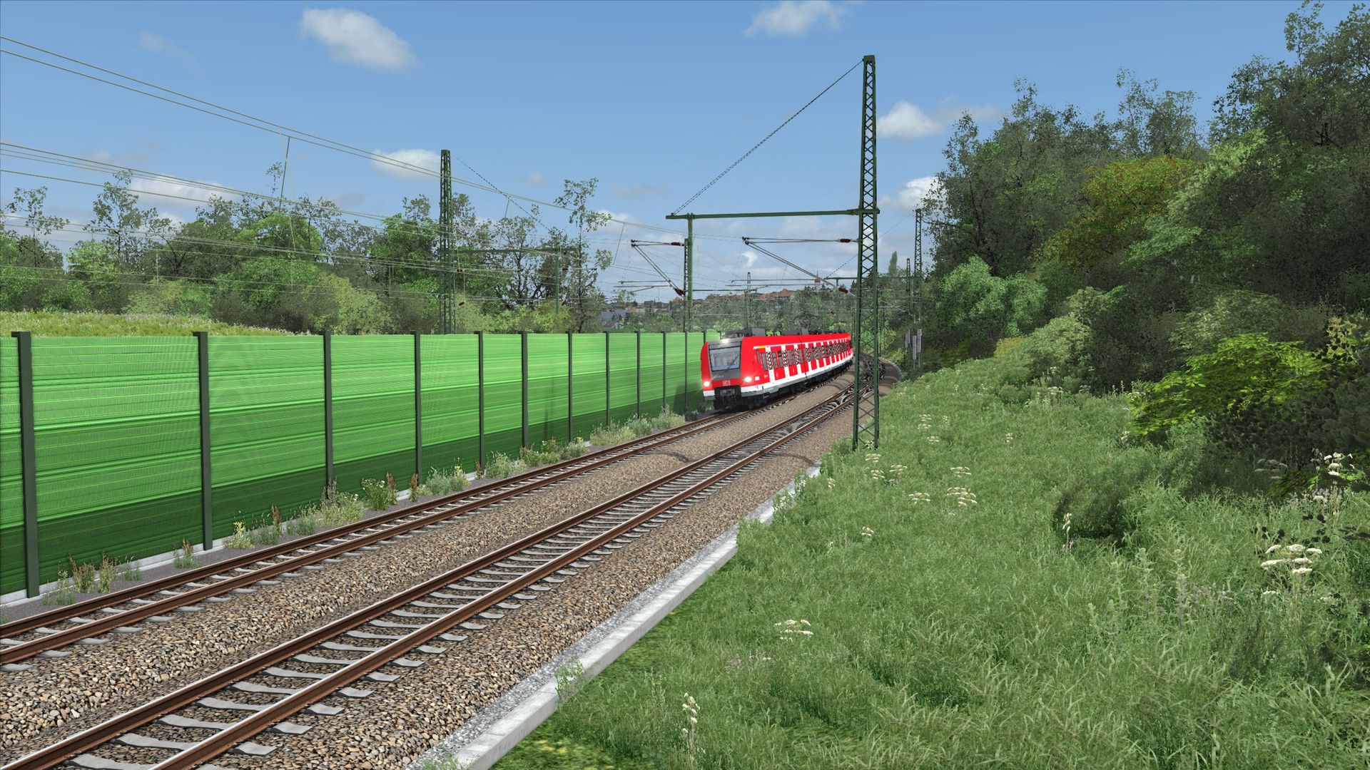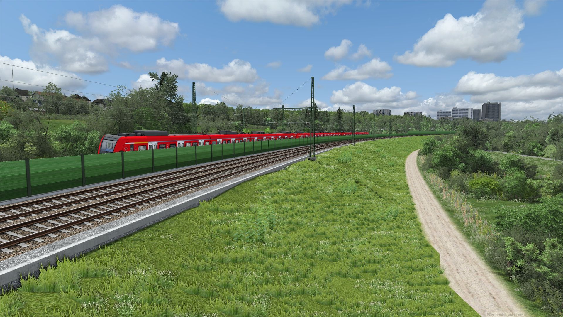 Ich würde fast sagen, dass dies der bisher anspruchsvollste Abschnitt gewesen ist. Die Strecke verläuft dort ein wenig in Hanglage in einem großen Bogen, wodurch man gerade auch auf der Fernbahn doch recht weit sehen kann. Ich will gar nicht wissen wieviele Stunden ich mit Terraforming verbracht habe... Viele davon auch um den Bahndamm gescheit bepflanzen zu können und die Hanglage mit den entsprechenden Höhen richtig darzustellen