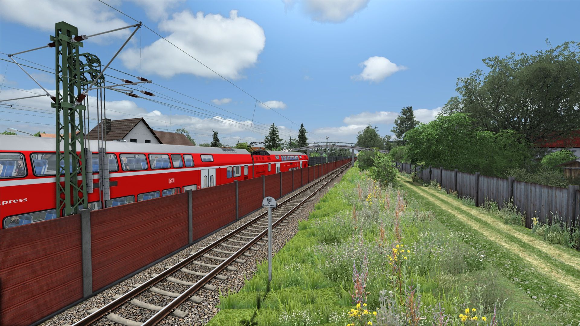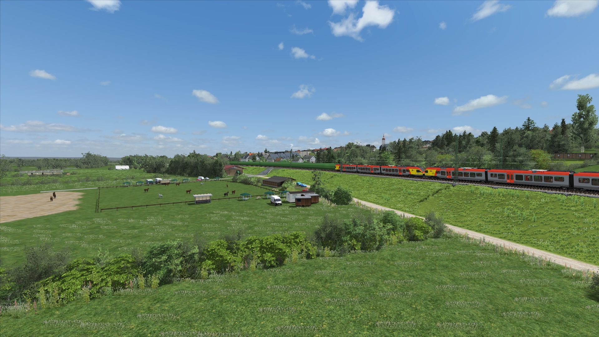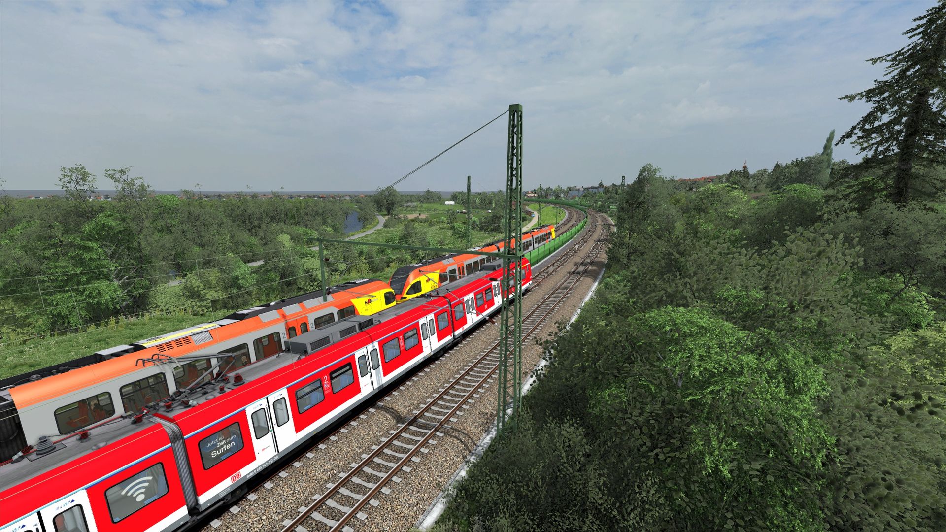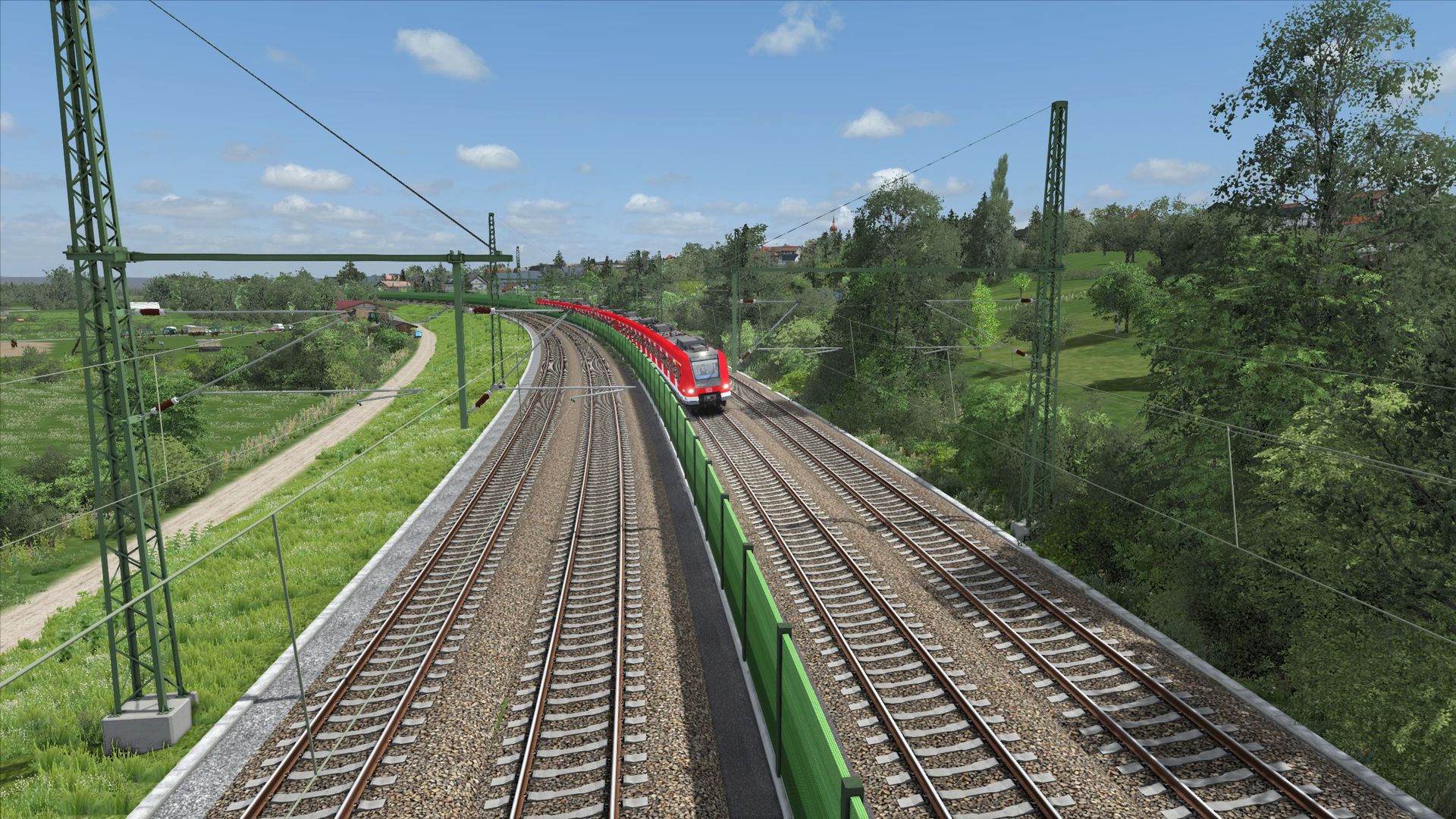Ich würde fast sagen, dass dies der bisher anspruchsvollste Abschnitt gewesen ist. Die Strecke verläuft dort ein wenig in Hanglage in einem großen Bogen, wodurch man gerade auch auf der Fernbahn doch recht weit sehen kann. Ich will gar nicht wissen wieviele Stunden ich mit Terraforming verbracht habe... Viele davon auch um den Bahndamm gescheit bepflanzen zu können und die Hanglage mit den entsprechenden Höhen richtig darzustellen