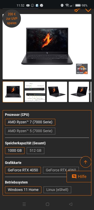 Ich hätte da zB einen recht günstigen Gaming-Laptop entdeckt, mit 32GB RAM, augenscheinlich ausreichend guter Grafikkarte und die CPU sieht jetzt auf dem ersten Blick auch mal nicht so schlecht aus.
