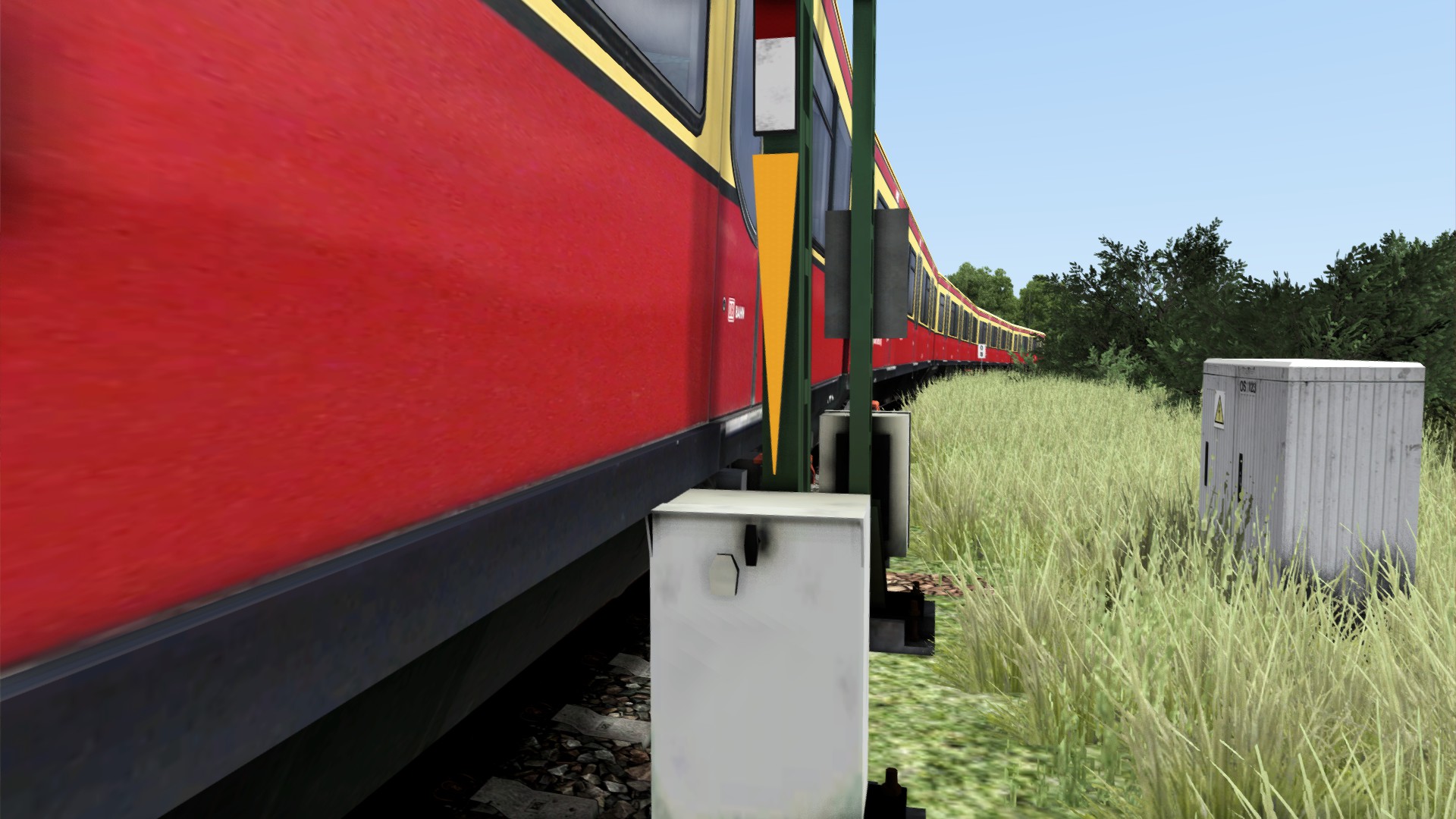 Das Hektometerzeichen steht in der Realität vor dem Bahnsteig, zwischen ebenjenem und dem Überwachungssignalwiederholer der Gegenrichtung. An selber Stelle befindet sich in der Realität auch das El 2 aus Schöneweide kommend. Statt des Hektometerzeichens steht dort eigentlich die letzte Ne 5 und ein Spiegel (Stichwort Spiegel: die vermisse ich auch ein wenig entlang der gesamten Strecke).
