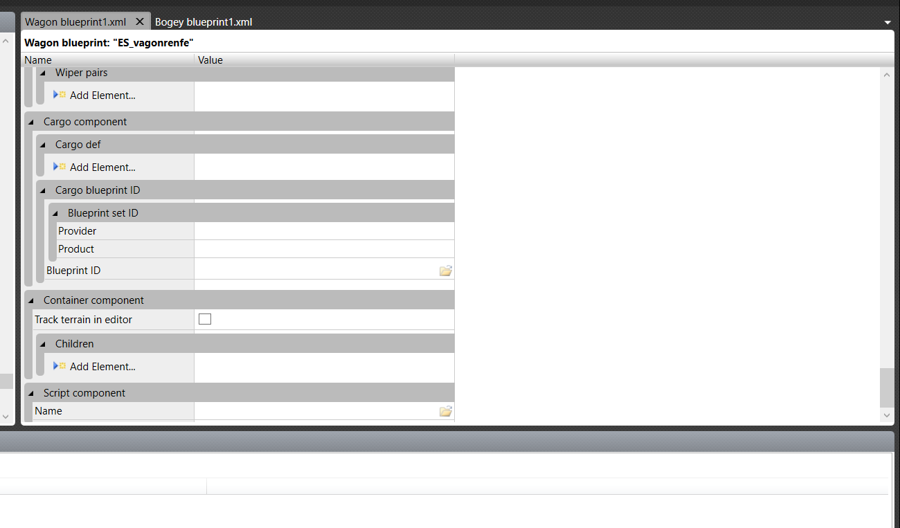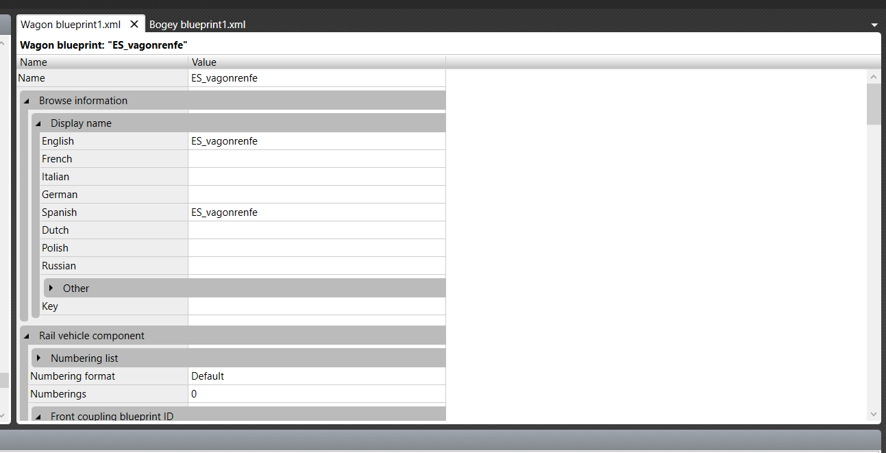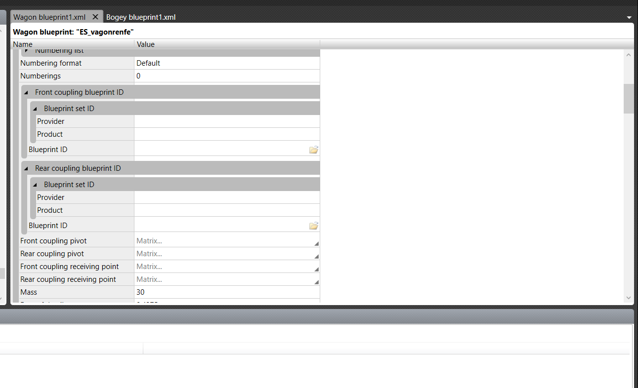 Der Blueprint des Wagens und der Kupplung wird mir korrekt exportiert, aber wenn ich sie mit dem Wagen-Blueprint zusammenfüge, ist das das Ergebnis. Gestern habe ich es geschafft, den Wagen in den Simulator zu exportieren, aber er verhält sich wie eine Art Objekt. Er erkennt die Schiene nicht, erscheint jedoch im Zug-Editor des Welt-Editors. Wenn ich ihn aber in die Szene ziehe, erscheint er wie ein Objekt und verschwindet, sobald ich ihn platziere. Meinst du, es könnte helfen, wenn ich dir Fotos davon schicke, wie ich den Blueprint konfiguriert habe? Vielen Dank für deine Hilfe!
