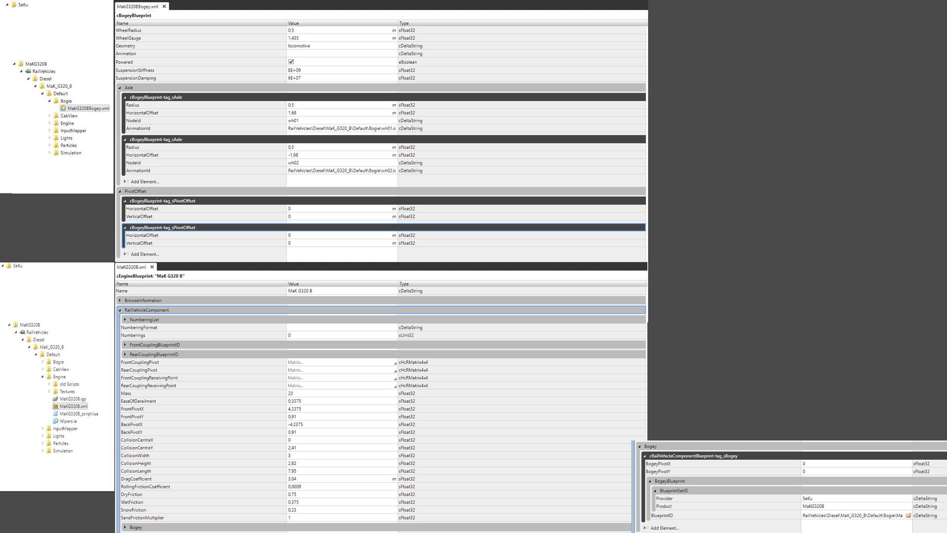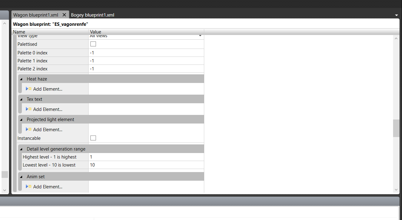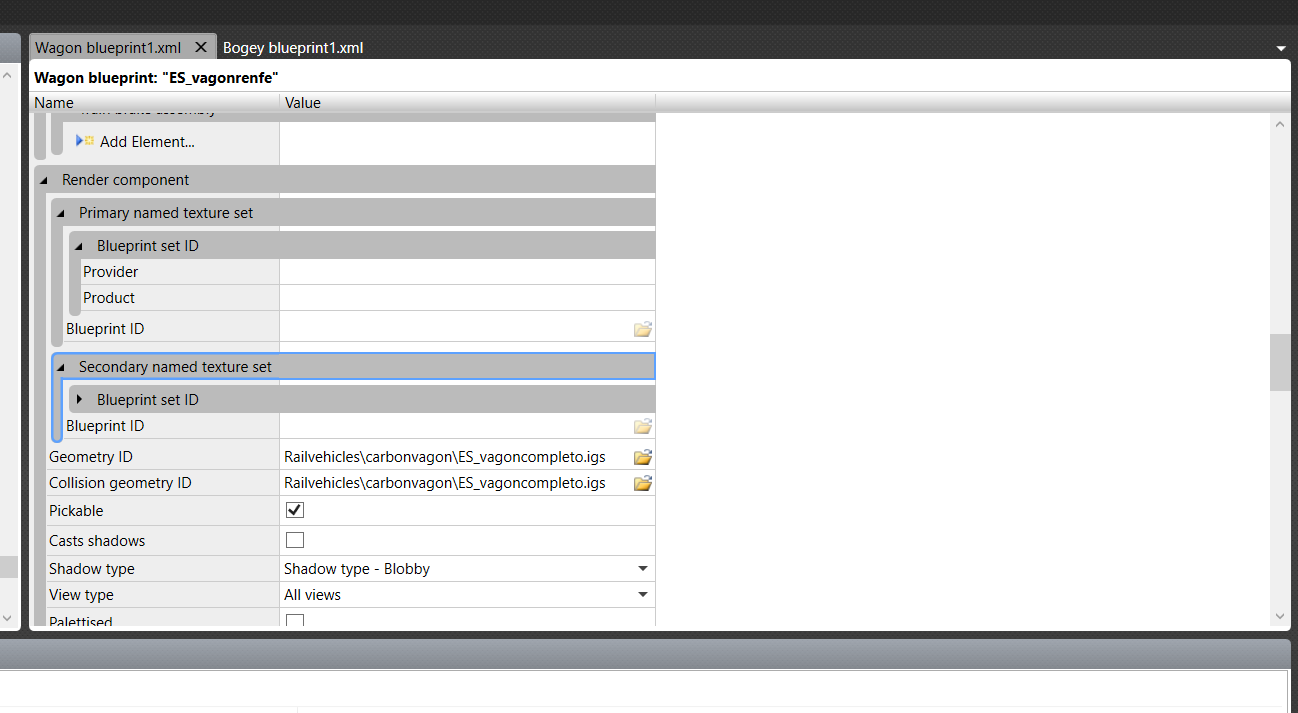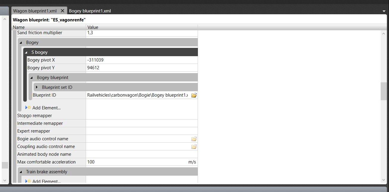 auch wenn Du für die spanische Breitspur baust, scheinen Deine Werte im Blueprint komisch zu sein. Ich habe Dir mal ein Beispiel verlinkt, wie bei meinem Normalspur Rollmaterial die Verlinkung auf den Bogey erfolgt. Allerdings handelt es sich in dem Beispiel um einen starren Bogey (Lokkasten), zum Verständnis.
