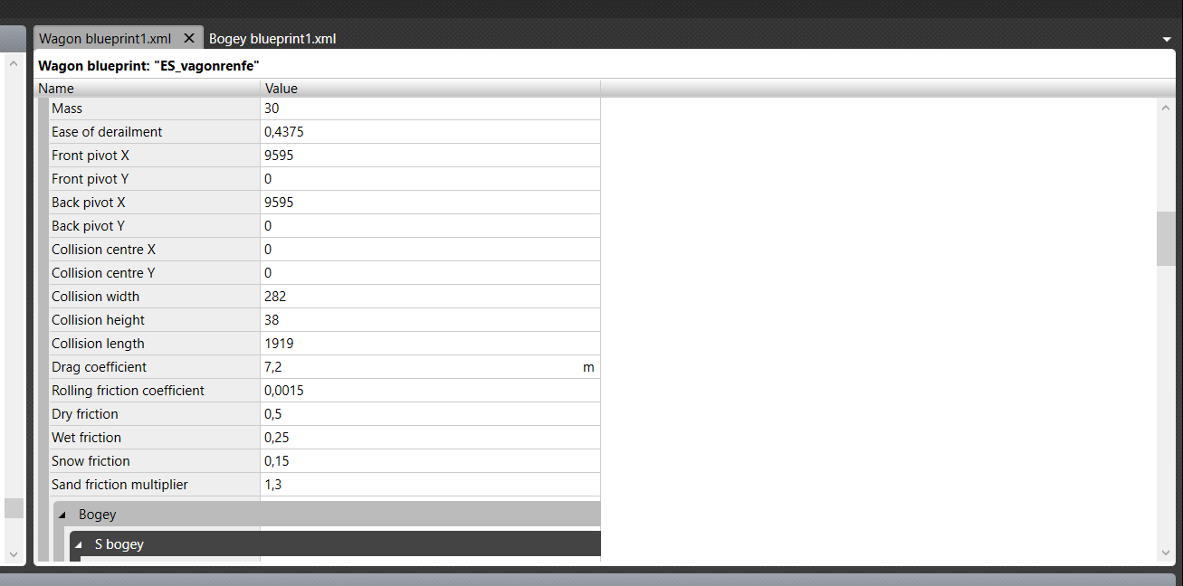 Pero introduje valores bastante pequeños, y tienes información en tu plano como un "Pivote de bogie X" de -311039 (metros) o un "Pivote de bogie Y" de 94612 (metros). Algo no puede estar bien.