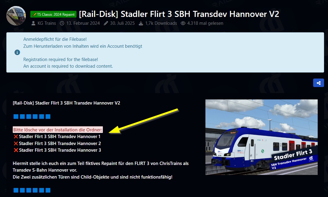 Good morning everyone, I installed a scenario on Hannover Bremerhaven the freight train to Hannover, the problem is that there are the standler 3 that is giving me problems with the Out of Memory error, if I remove the Sandler 3 the scenario starts without errors, I replaced it with other standler flirt 3 and it always gives me the same memory error do you know how to solve it thanks ![]()