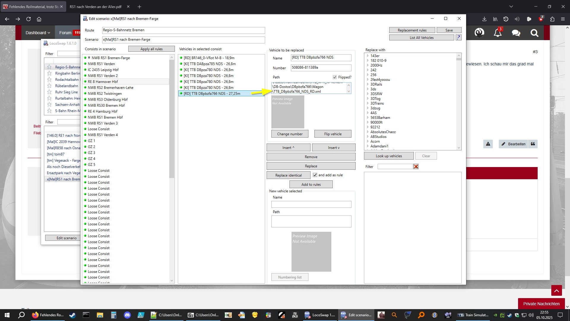 Ein paar fehlende bzw. mittlerweile von 3DZug umbenannte Güterwaggons habe ich mit Locoswap getauscht, wenn ich das Szenario starte, erscheint die folgende Fehlermeldung:
