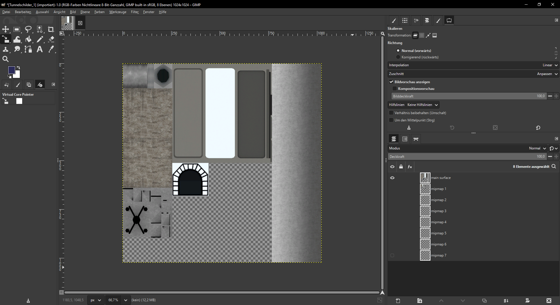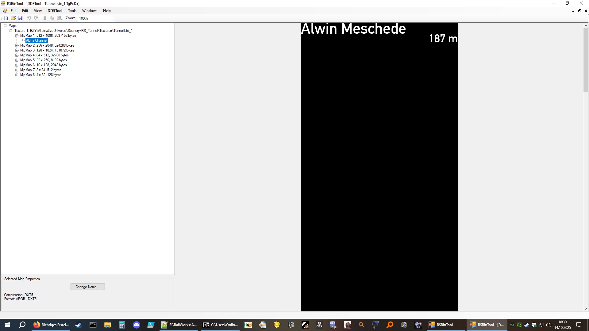 Da ich bereits eigene Objekte für den TS erstellt habe, habe ich die Dateien so weit entpackt, dass ich Zugriff auf die Texturdatei habe. Diese ist jedoch komplett ohne Beschriftung, obwohl im Editor im Spiel die Beschriftung angezeigt wird.