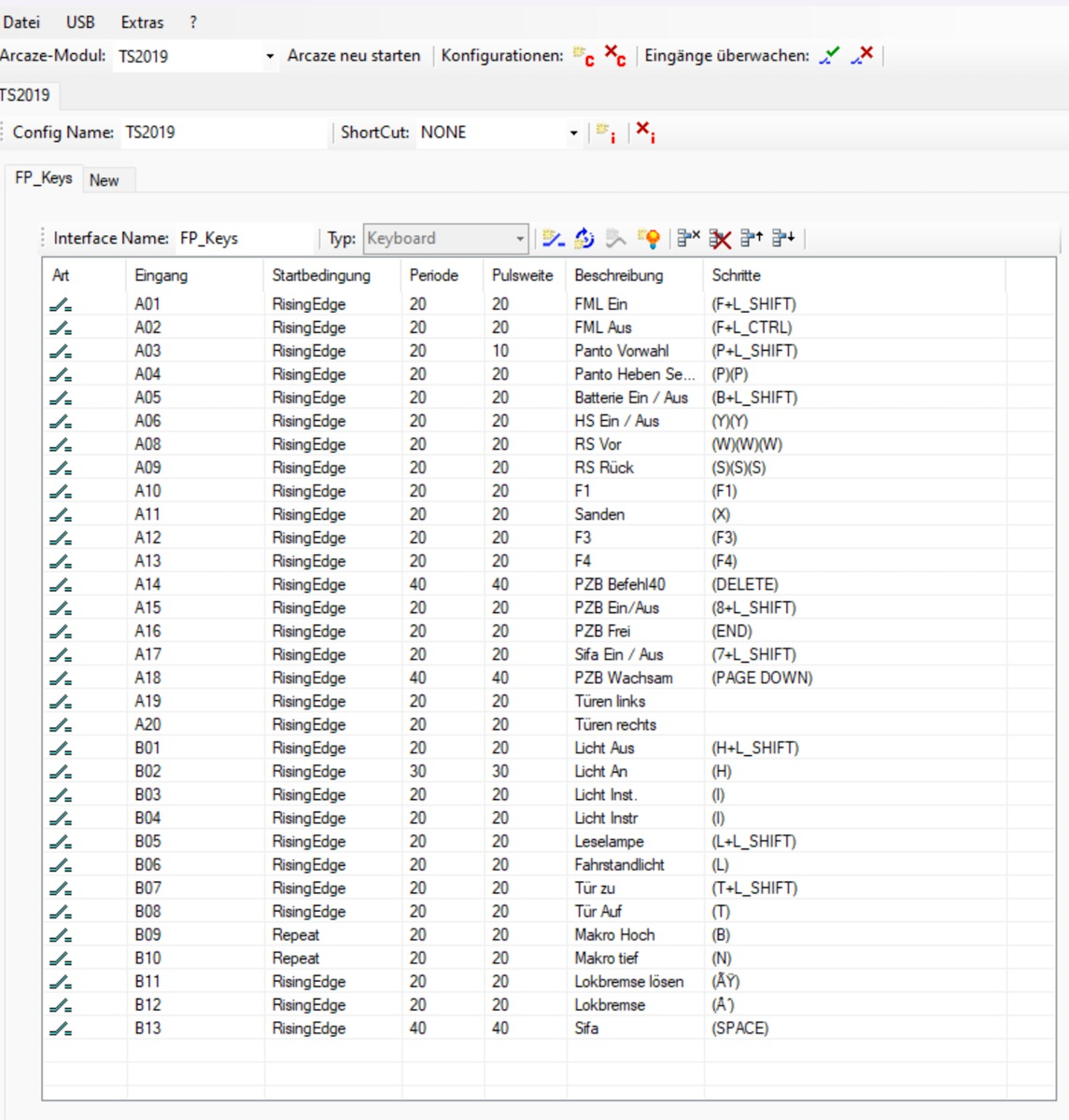 Arcaze Interface eingestellt für Trainsim Classic (letztes Bild)
