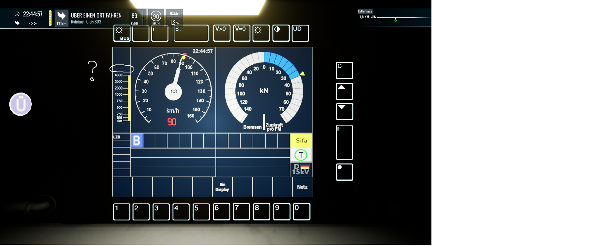Ein ähnliches Problem gibt es ja auch bei der BR112. Dort fehlt die Geschwindigkeitsvorwahl der LZB, also welche Geschwindigkeit als nächstes erwartet wird (Wahrscheinlich einfach Tacho von BR143 übernommen). Und ebenso auch nur die 4000m Skala, ohne die Anzeige, die bis 7000m geht.