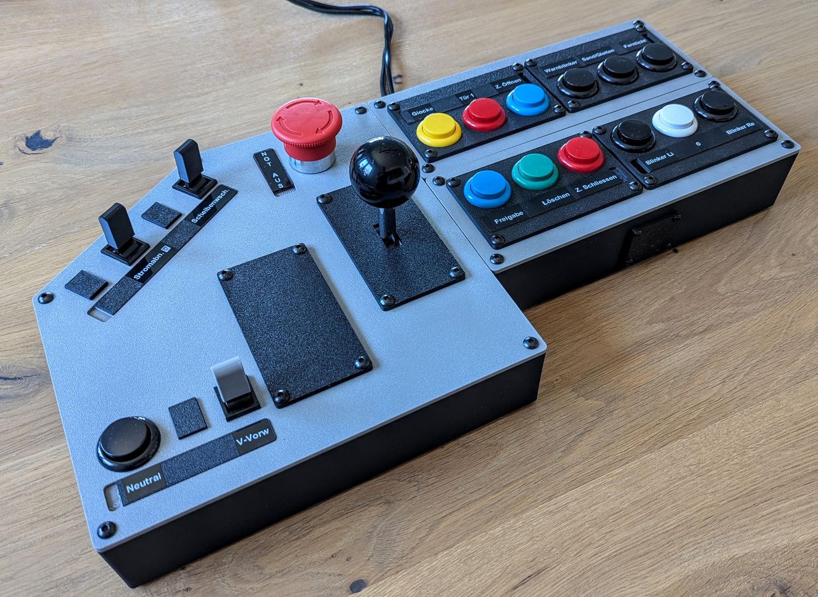 Das Fahrpult ist modular aufgebaut und kann so für jeden Simulator, eine bestimmte Lok oder nach eigenen Wünschen angepasst werden. Voraussetzung ist ein 3D-Drucker. Hardwarebasis sind die günstigen Arcade-Sticks und Buttons von Ali, dem großen A und Co.