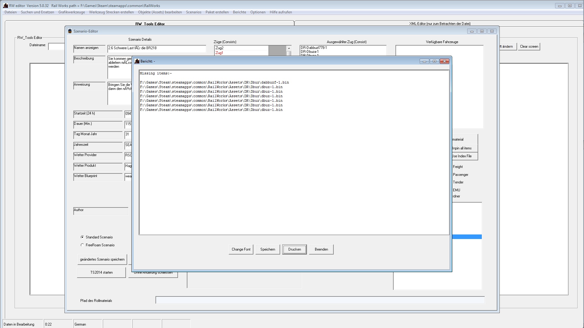 Hab dann vorhandene Szenarios genommen und diese dann einfach mit den RW-Tools umgestrickt, also andere Loks und andere Wagen reingesetzt, und diese als neues Szenario abgespeichert. So hatte ich so wenigstens etwas Abwechslung.