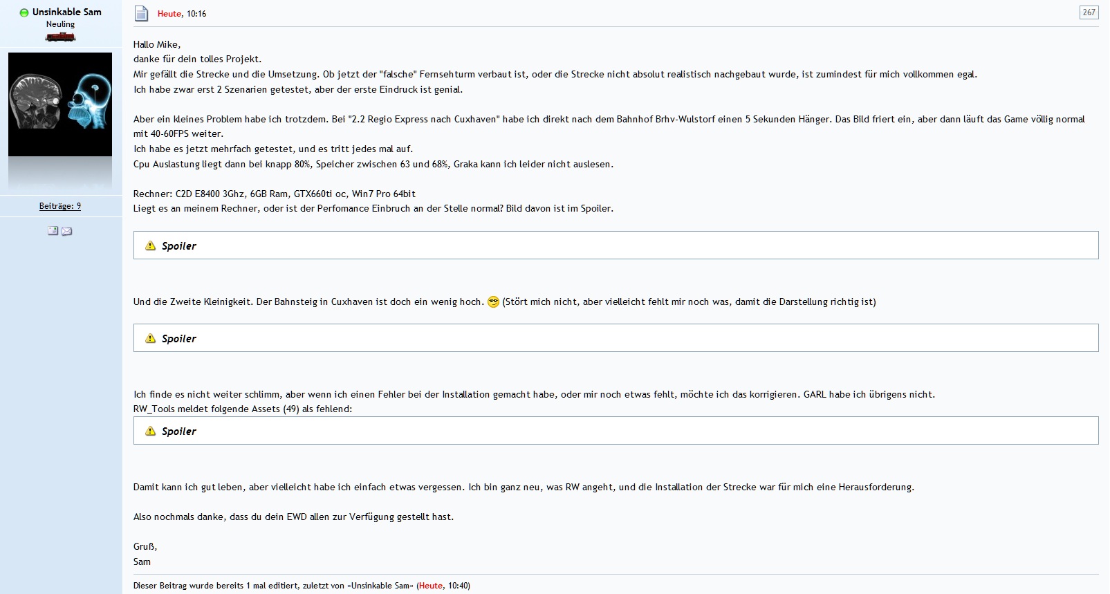 Bin heute den Autotransportzug gefahren, muss sagen alles ohne Probleme, keine Abstürze so weit ich das auch beurteilen kann keine Fehler in der Signaliesierung, schade das es dann so dunkel wurde zum Schluß da hat man nicht mehr viel von der Außenwelt gesehen. ![]()
