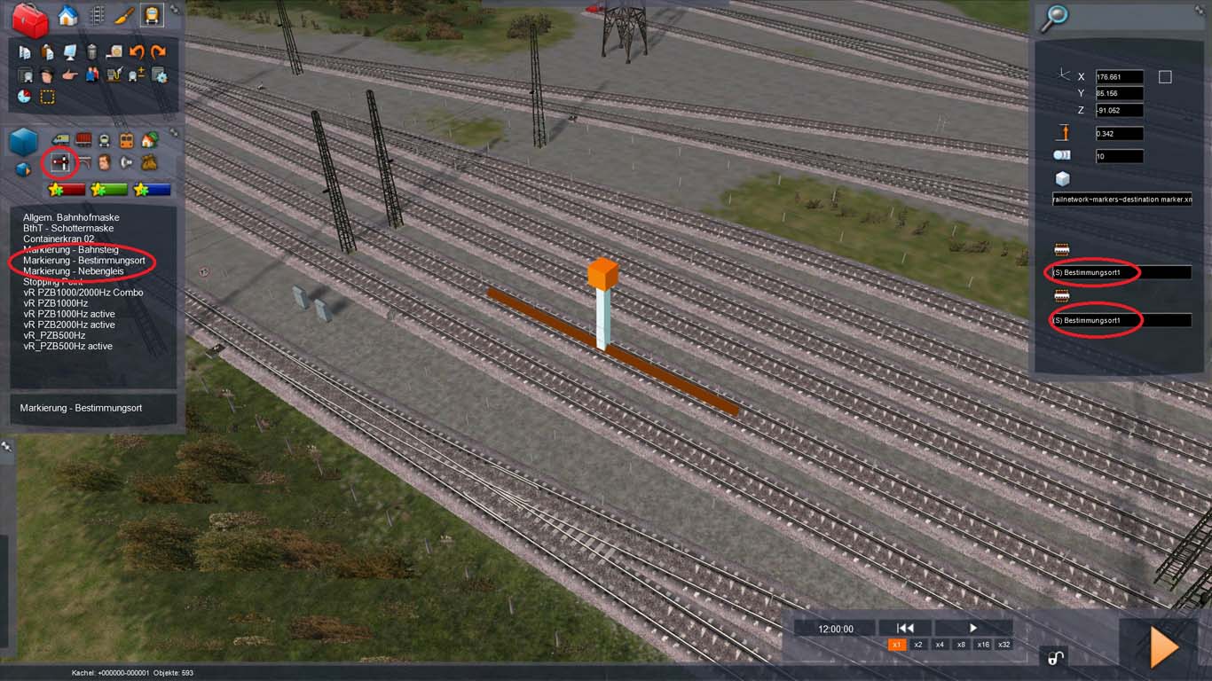 Du klickst links auf den rechten Winkel unter dem Loksymbol und wählst die gewünschte Markierung. Dann auf das gewünschte Gleis klicken und Markierung setzen, die Länge kann man an den Enden der Markierung (Markierung anklicken) jederzeit ändern. Dann auf den mittleren Pfosten doppelklicken und es erscheind rechts das Eigenschaften-Fenster, wo du einen beliebigen Namen eingeben kannst, der im oberen und unteren Feld gleich sein muss, soweit ich weiß.