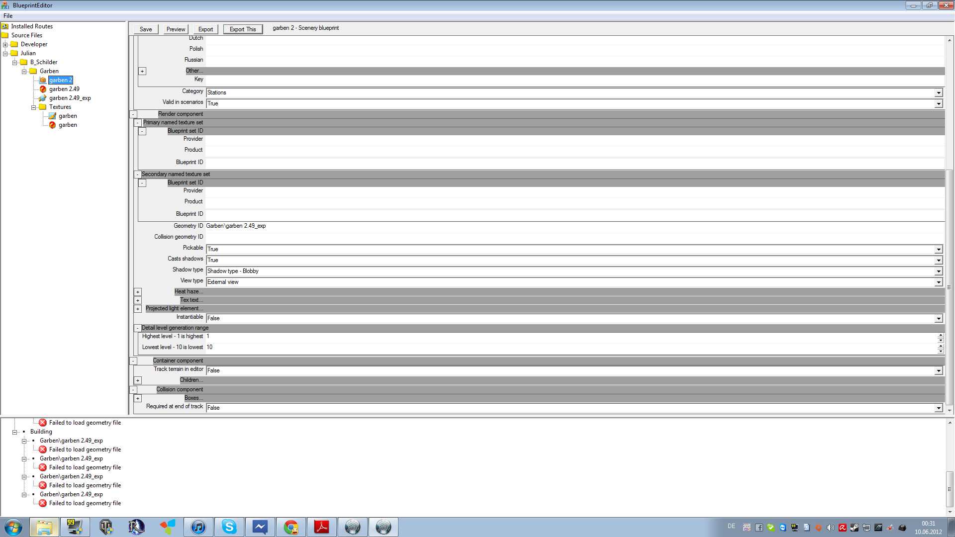 nun bin ich kurz davor ein Objekt fertig zu importiern und habs durch den exporter geschafft und nun meint aber der Blueprint Creator mir noch eins auswischen zu können.