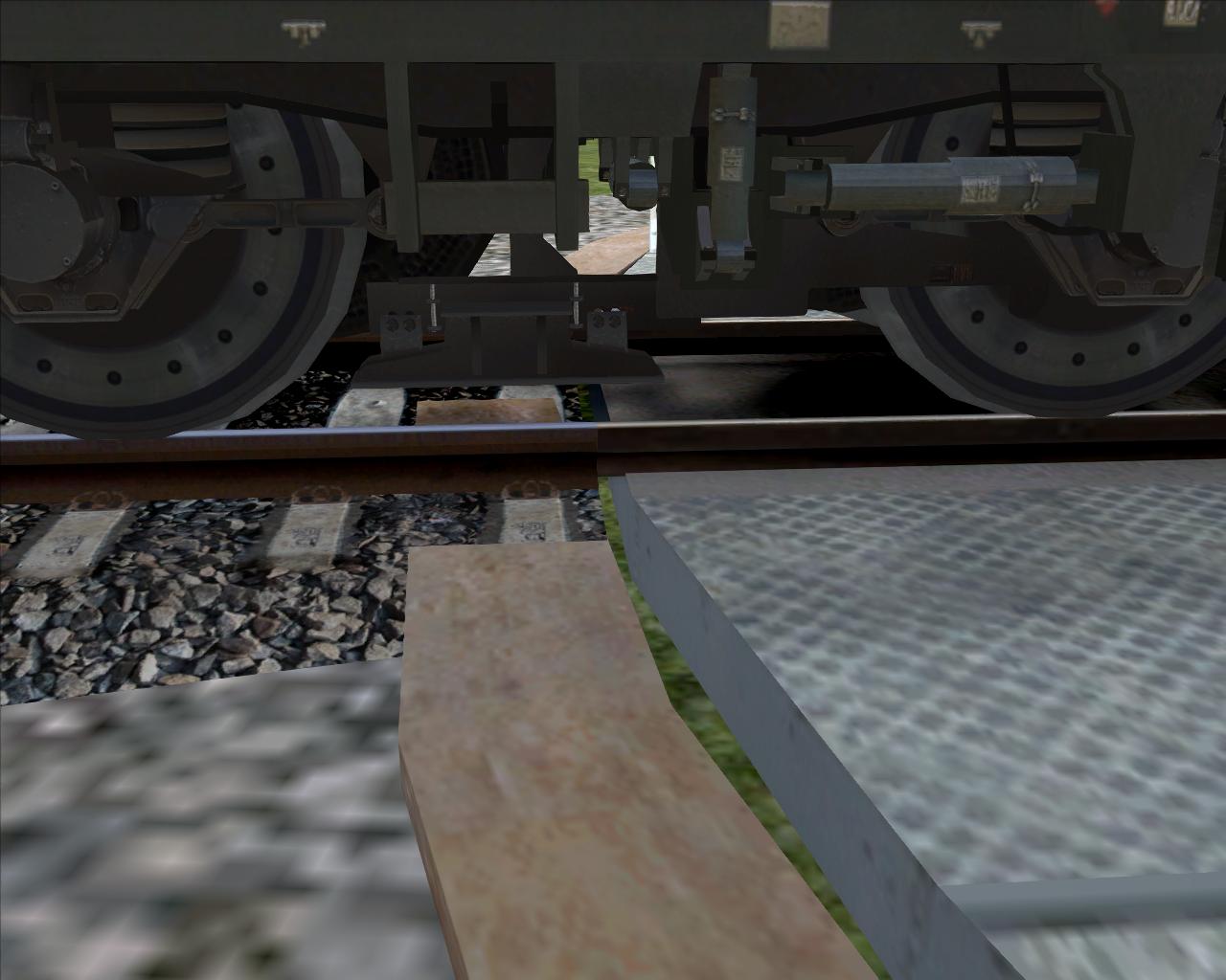 Ich wieder zurück zu meiner Strecke in den Editor, reiße die Drehscheibe mit Anschlussgleis ab und setze die Drehscheibe neu, diesmal (wie in Siegen) 0.360y niedriger als die Gleise.
