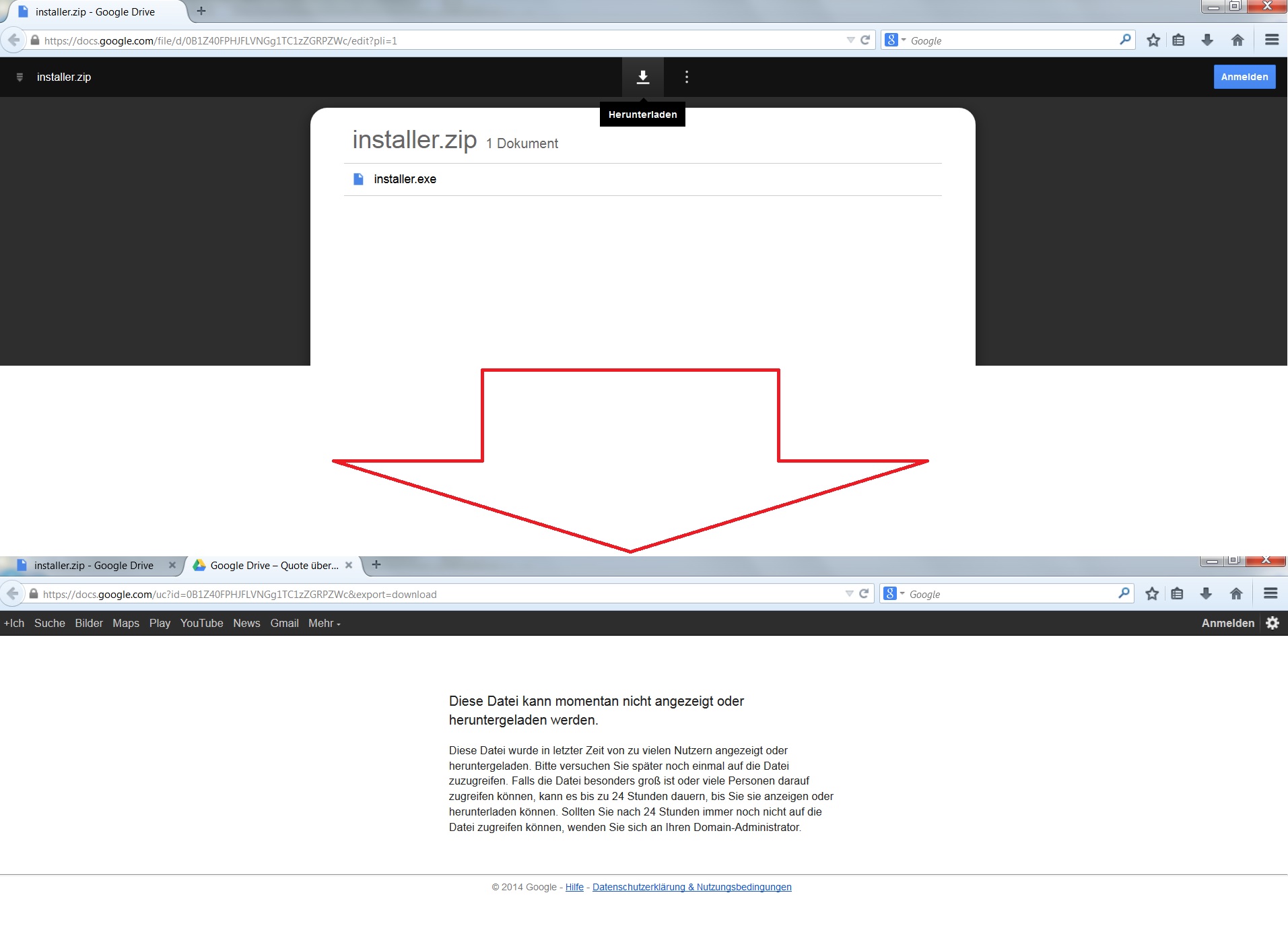 Zu dem Fehler auf dem Screen, hatte ich auch gerade bei meiner Datei auf Google, scheint was mit dem Server zu sein...? Oder soll "Quote über schritten" heißen dass nur begrenzt viele Leute herunterladen können?