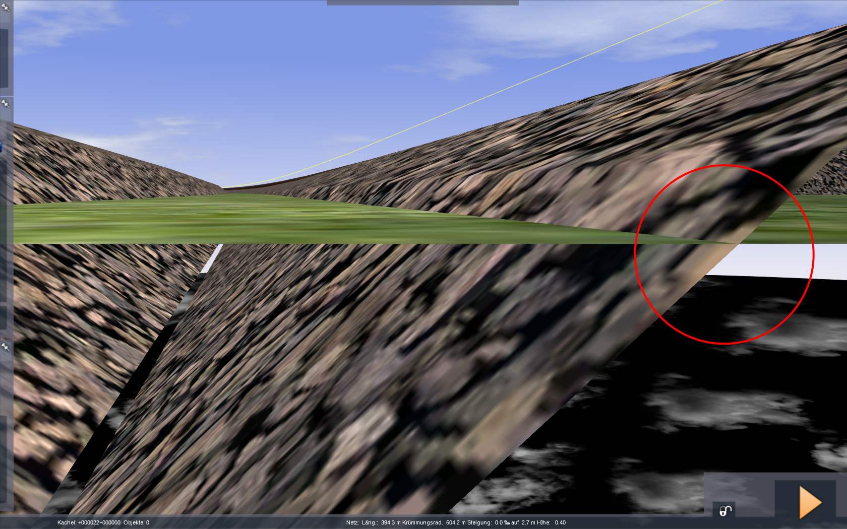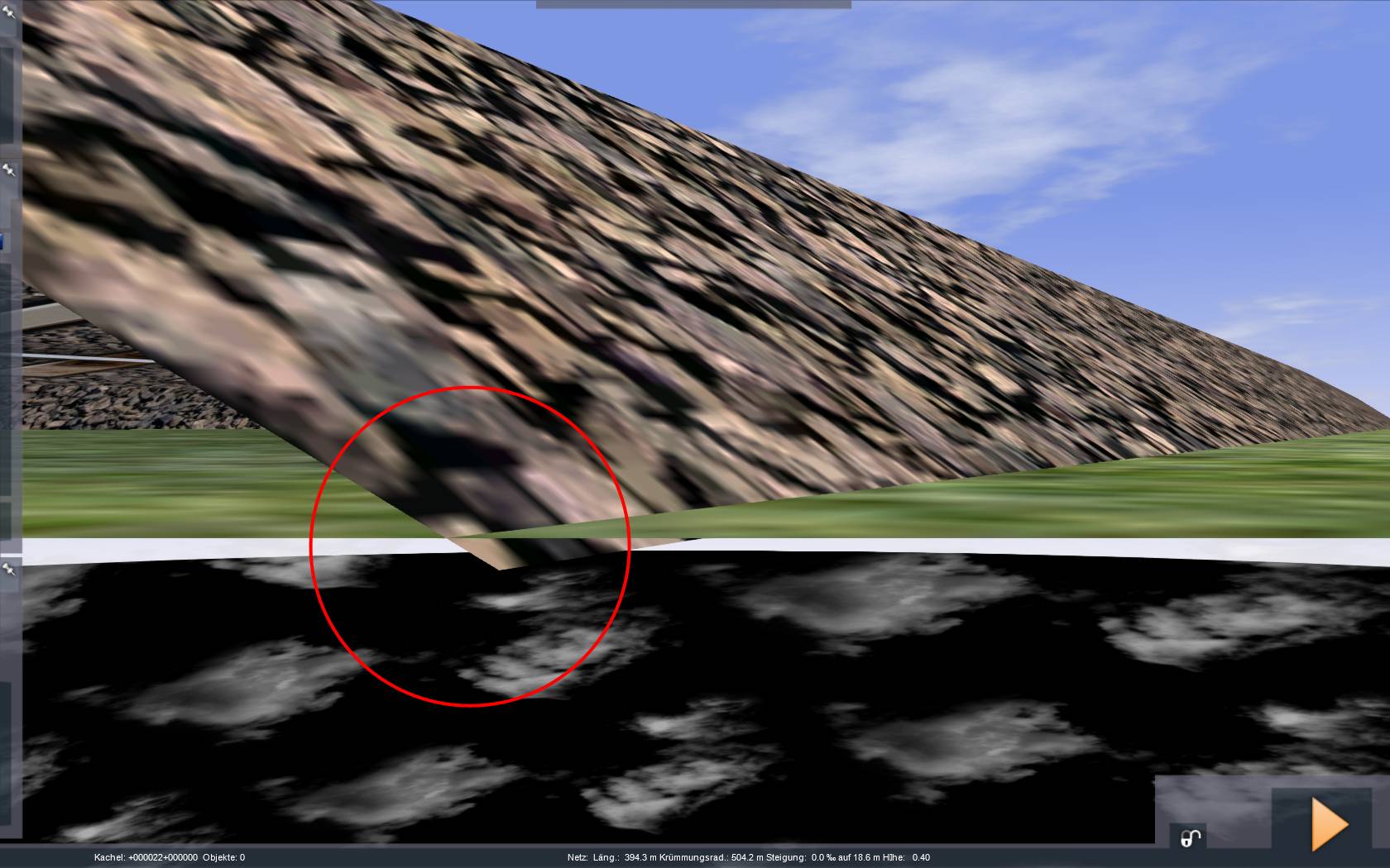 Es hilft leider nichts, im Editor das Anpassen-Werkzeug zu benutzen, weil es die Drehachse/die Mitte des Gleisbetts als Punkt zum Einebnen nimmt.