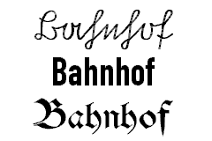 Dazu suche ich die zu Reichsbahnzeiten und teilweise noch bis in die 70er Jahre verwendete Schriftart der Deutschen Reichsbahn.