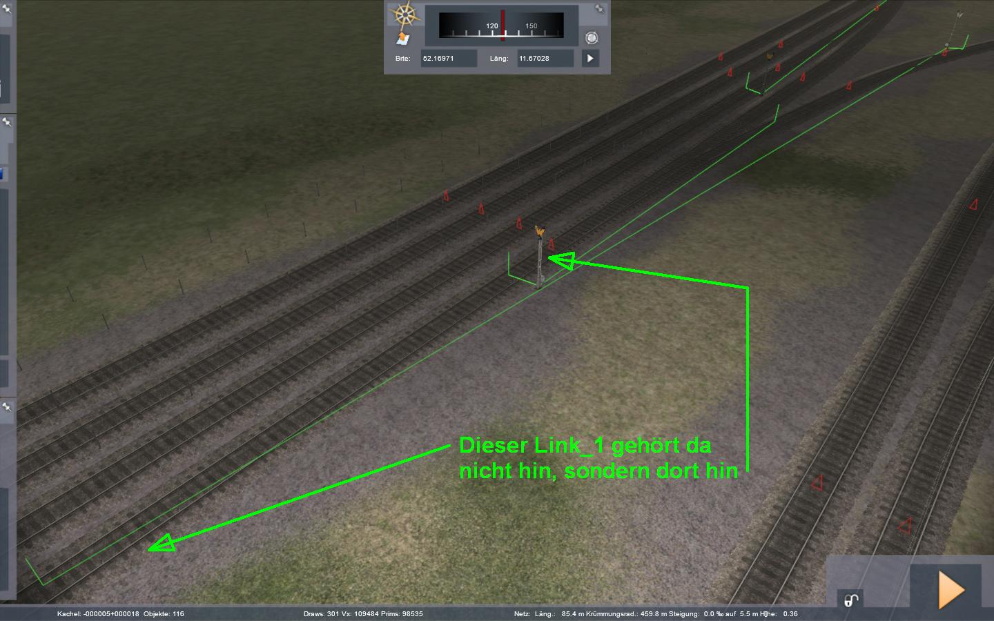 Natürlich könnte man jetzt die Signallinks um 1-2 Meter verschieben, das habe ich auch ab und an getan, aber dies ist derart zeitaufwändig, dass ich diese Raparaturstrategie nicht weiter verfolgt habe.