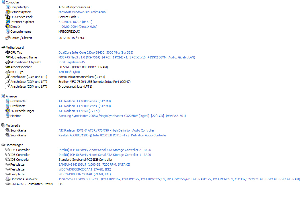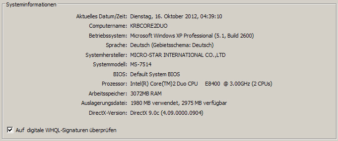 Vielleicht machst du auch ein Bild von der ersten Seite dieser DirectX-Diagnose.