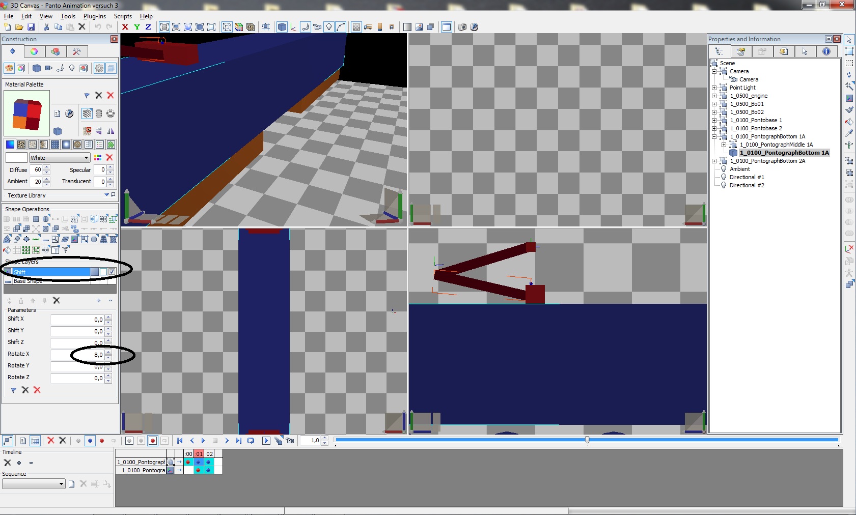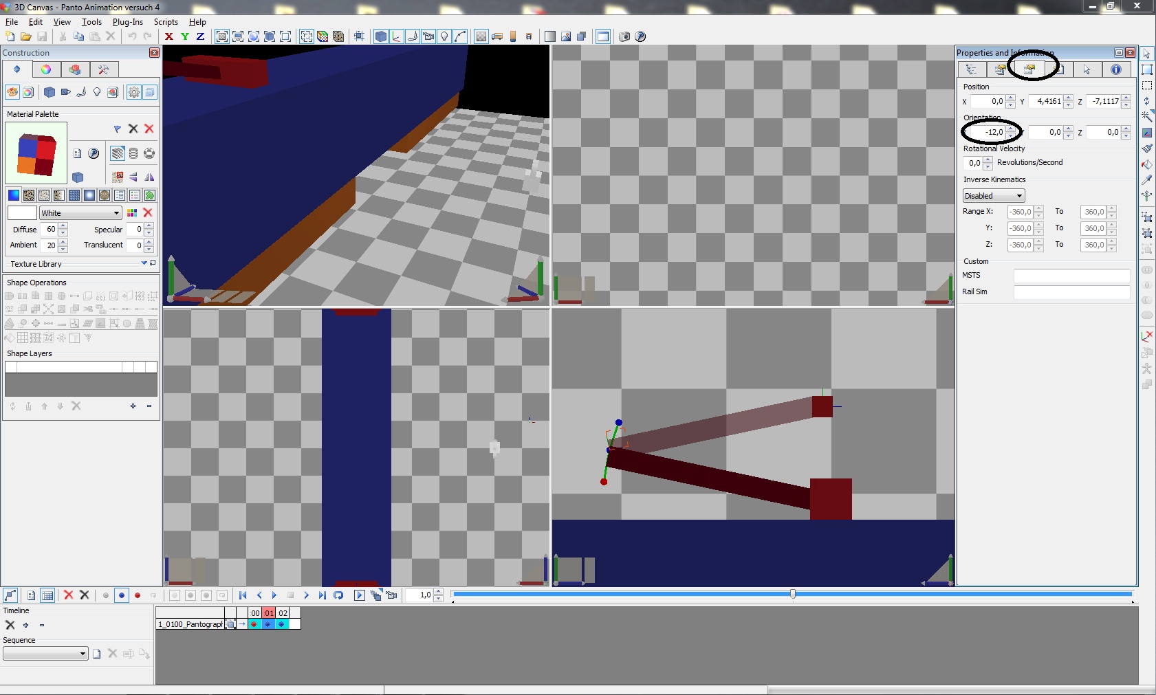 Bei meinen ersten versuchen, habe ich die Pantograph Teile Verlinkt (Bild 2) und die Drehung bei der Animation über Shift -> rotate X gemacht was aber der Fehler wahr .