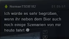 Nur um es mal klarzustellen: Es ging mir im Stream ums Prinzip. Wenn man ein Szenario fährt, egal welches, und dieses länger als 45 Minuten ist, soll man es von mir aus an einem Halt beenden, hab ich auch vollstes Verständnis für. Wofür mir aber jedes Verständnis fehlt, und so habe ich mich auch bei Twitch ausgedrückt, ist die Tatsache, dass man jenes 5 Minuten vor Ende beendet. Habe ich kurz was zu geschrieben, und wollte die Sache dann ruhen lassen. Was mich aber auf die Palme gebracht hat, sind provokante Beiträge von einem "kanalvonhupensohn" (mittlerweile mit der Person selber einiges geklärt, da es Falschinformationen bzgl. der Zuordnung hier im Forum gab). In diesem Zusammenhang fiel dann auch genannter Ausdruck von mir, stehe ich auch zu, denn die Moderation ist dort ebenfalls absolut zum Kotzen, was man an der armseligen Sperre meiner Person im Chat dort super erkennen konnte.