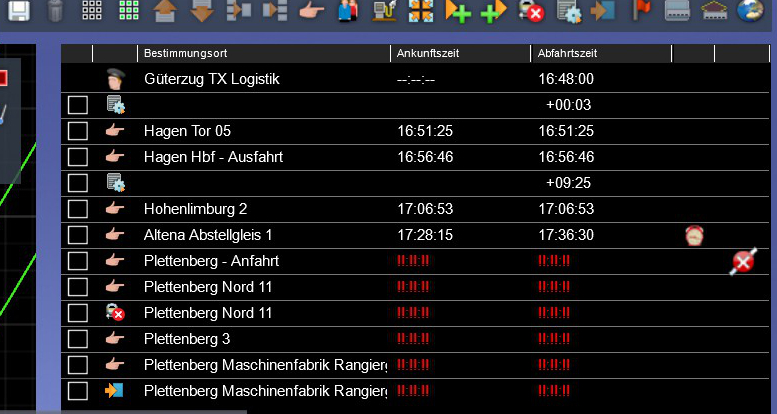 Im Szenarioeditor steht beim Fahrplan des Spielerzuges:
