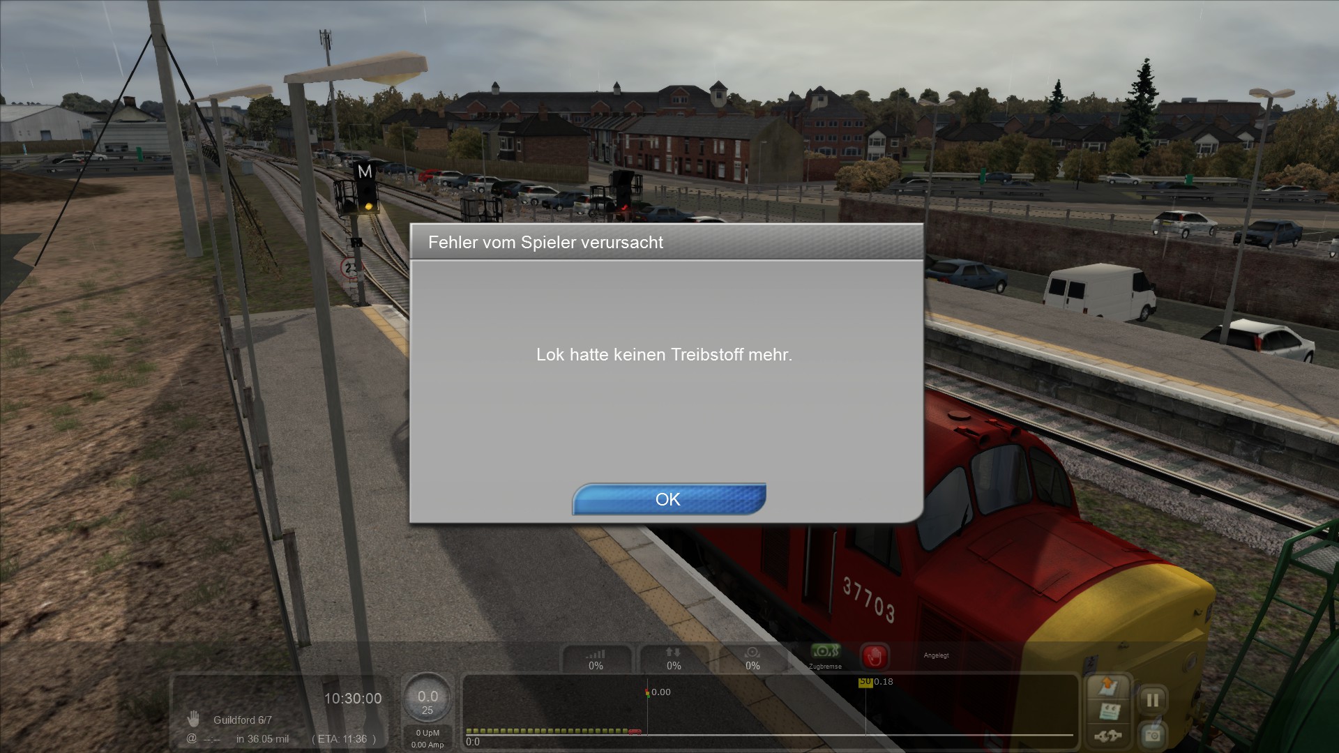 Ich starte also jetzt die Aufgabe aus der Porthmouth Direct Line mit der Class 37 Red und habe leider immer noch den Standard Sound, also weder 2 Horn noch RailJoint Sound
