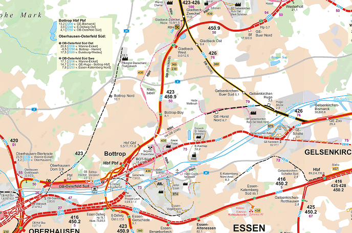 Unsere Strecke führt von Gladbeck nach Oberhausen und von dort aus weiter nach Düsseldorf womit der Anschluß an das Köln-Düsseldorf Addon realisiert wird. Der derzeitige Stand beinhaltet erstmal nur Gladbeck und Dorsten, wir stehen ja wie gesagt auch erst am Anfang.