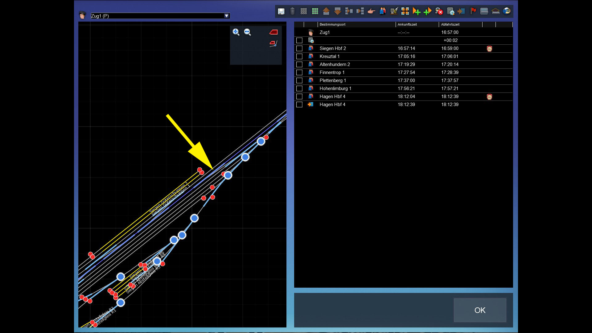 Wenn ich in Siegen abfahre, gelange ich kurz danach rechts auf ein Gleis, welches dann in einem Tunnel bzw. Portal endet.Nach Hagen geht es aber geradeaus. Da ist offensichtlich eine Weiche falsch gestellt. Ich habe den Fahrweg im Editor mal überprüft, es ist alles korrekt. Nur im Szenario stimmt dann die Weichenstellung nicht mehr.
