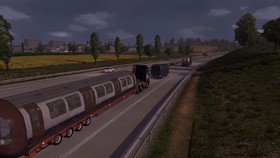 )Mal ein bisschen Eisenbahn im ETS2, einmal vorm und einmal auf dem Laster und ein glücklicher Moment mit 2 Auto-Transportern. Wobei ich meine Ladung interessanter finde