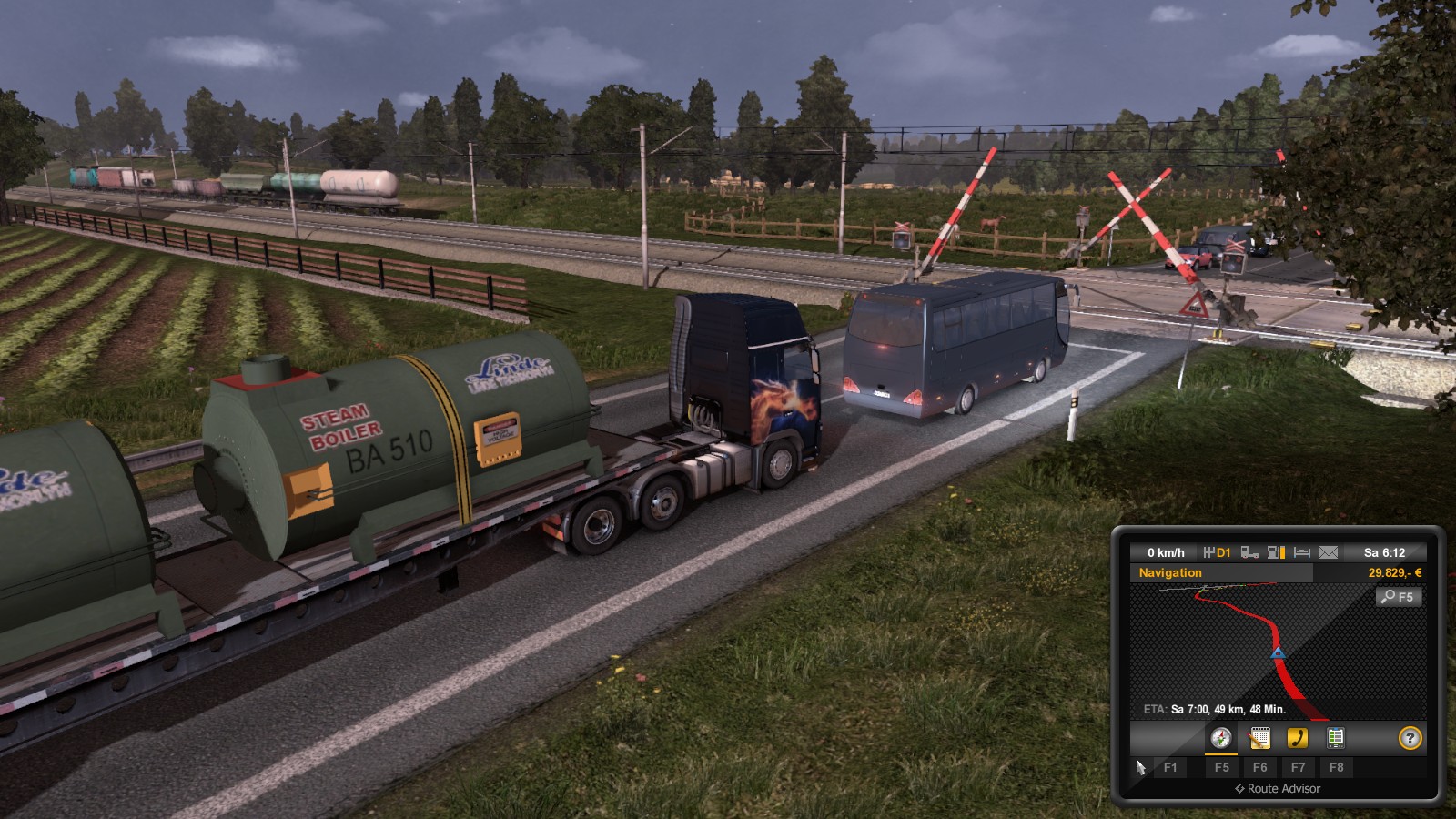 )Mal ein bisschen Eisenbahn im ETS2, einmal vorm und einmal auf dem Laster und ein glücklicher Moment mit 2 Auto-Transportern. Wobei ich meine Ladung interessanter finde