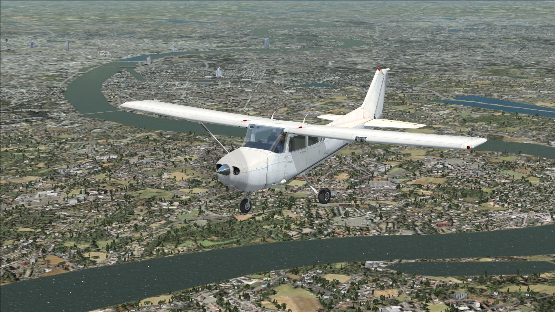 Kurzer Flug im FSX mit der Cessna C172SP Skyhawk über Köln mit anschließender Landung in Leverkusen (EDKL)
