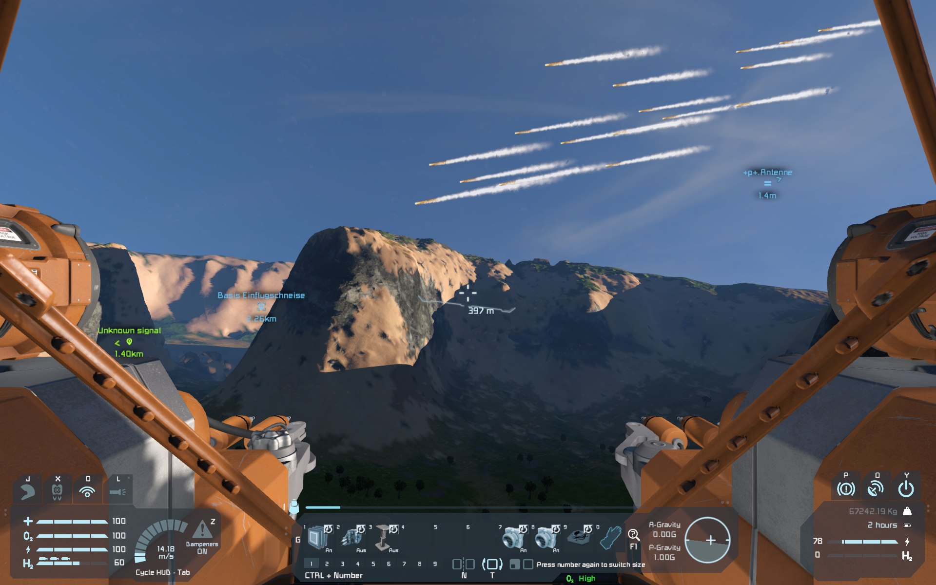 Gesichtet bei einem Testflug im Freien mit dem Schweißschiff "Mücke" (Sicht aus Cockpit)