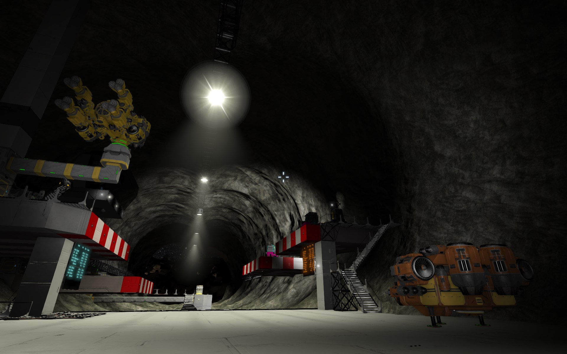 Lichte Höhe ist hier etwa 50-60m.Bietet viel Platz für Raffinerien, Landeplätze, Reaktoren und Verladeeinrichtungen.