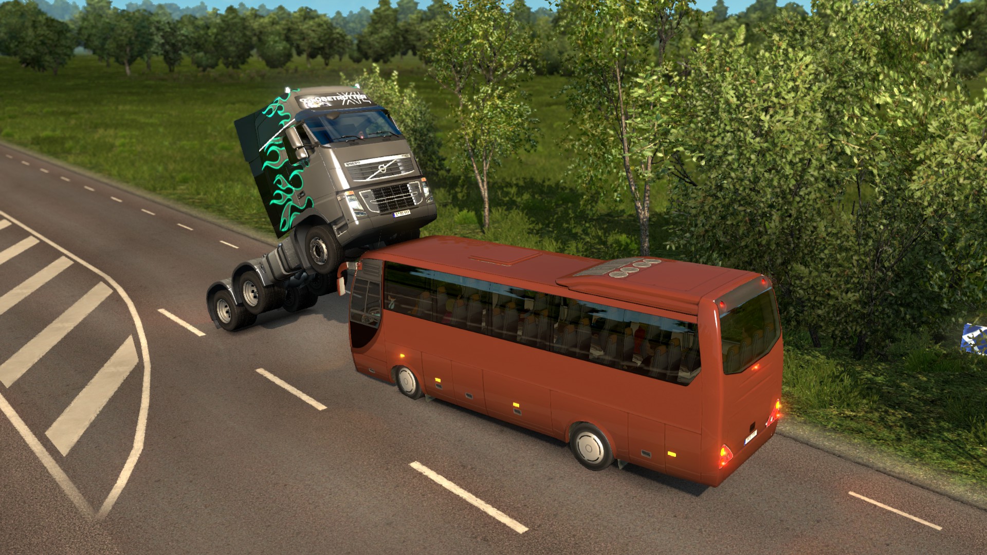 Mal wieder ein bisschen Singleplayer gefahren und bei der Überführungsfahrt in eine etwas unvorteilhafte Situation geraten. Aber eins muss ich schon sagen: Der Volvo ist genial!