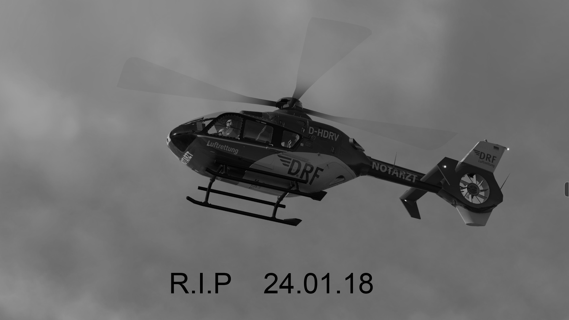 Seit mehreren Jahren bin ich den Ec 135 DRF D-HDRV geflogen, dieser ist leider im Jan.18 mit einem Kleinflugzeug in der Luft zusammengestoßen. Bei den Unfall hat niemand überlebt.