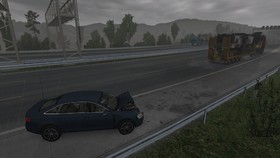 220 PS im Scania, da rollt das fast nicht mehr am Berg mit der 44t Asphaltfräse. Und ein bisschen Eisenbahn war auch dabei. Ja, SCS hat sich sogar über die Baureihenbezeichnung Gedanken gemacht. Das ist keine Modifikation!
